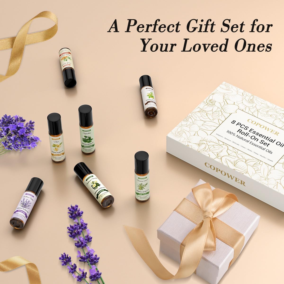 A relaxing gift, COPOWER 8pcs Roller Ball Essential Oil Set, warm, stress relieving, is an ideal gift for women, friends, family.
