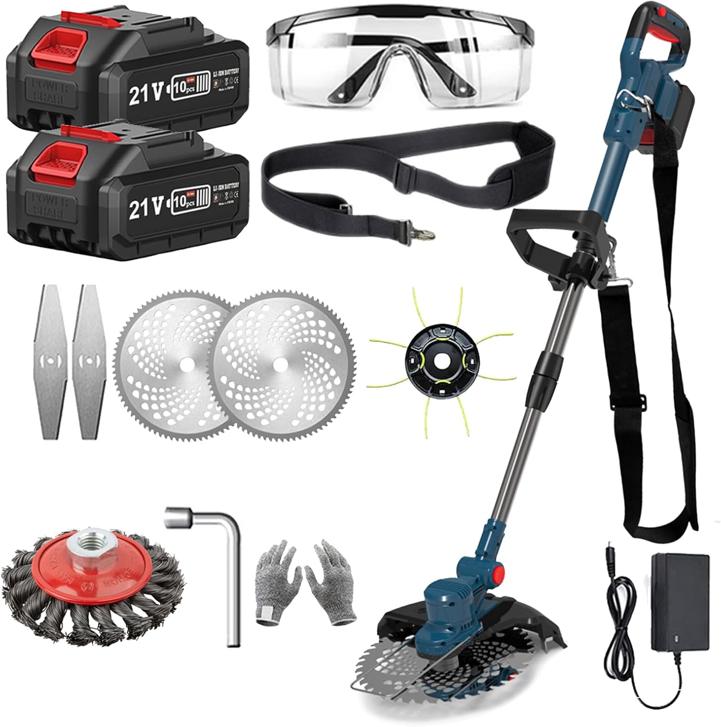 Cordless String Trimmer with Battery and Charger Grass Trimmer Electric Edger Battery Powered Lawn Mower Weed Brush Cutter Kit Lawn Mower Weed Brush Cutter Kit (Blue)