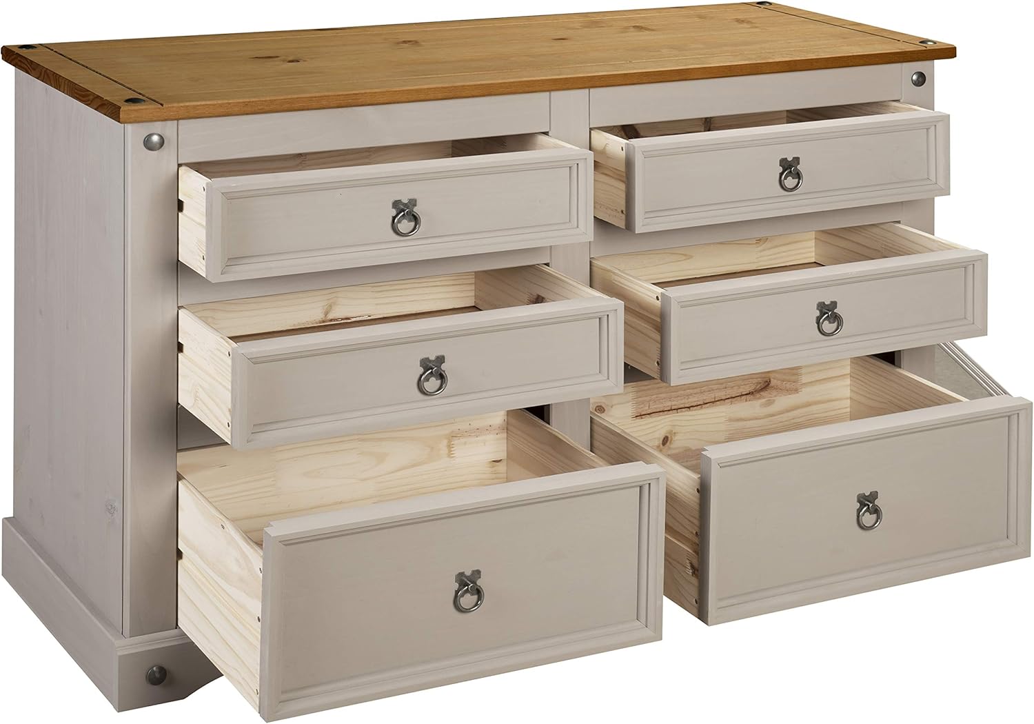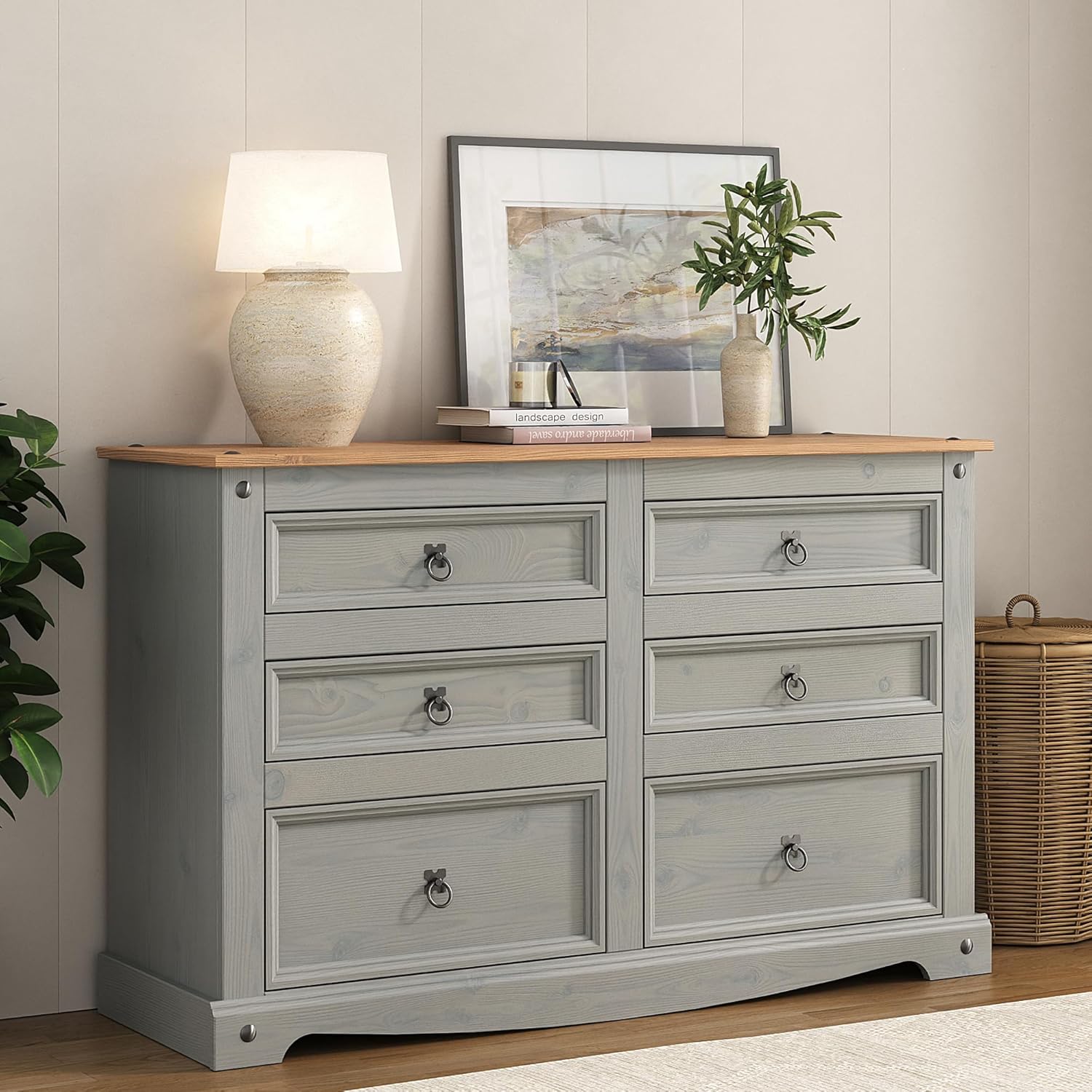 Corona Grey Chest of Drawers 6 Drawer Solid Pine Mexican 3+3 Wooden Sideboard