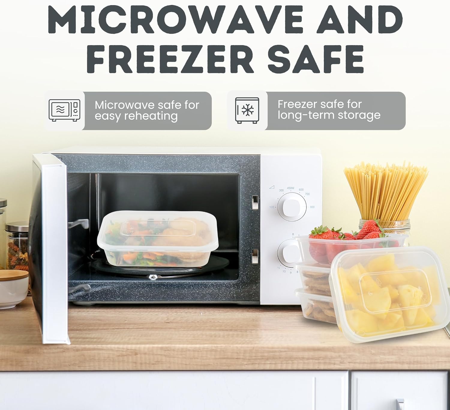 𝐌𝐈𝐂𝐑𝐎𝐖𝐀𝐕𝐄 & 𝐅𝐑𝐄𝐄𝐙𝐄𝐑 𝐒𝐀𝐅𝐄: No more transferring food to another container! These plastic containers with lids are microwavable, and also safe for freezer use. Great as lunch containers for work or school, or as a kitchen storage containers.