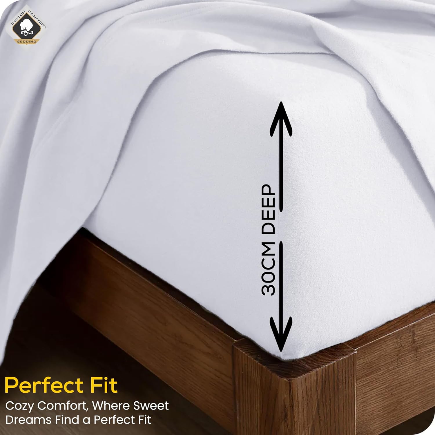 Discover the perfect fit with our 100% Brushed Cotton Fitted Sheet, expertly tailored with a 30cm deep pocket to effortlessly envelop your mattress. Elevate your bedding experience with this exceptional combination of luxurious comfort and precise design, ensuring a snug and stylish fit for a restful night’s sleep.