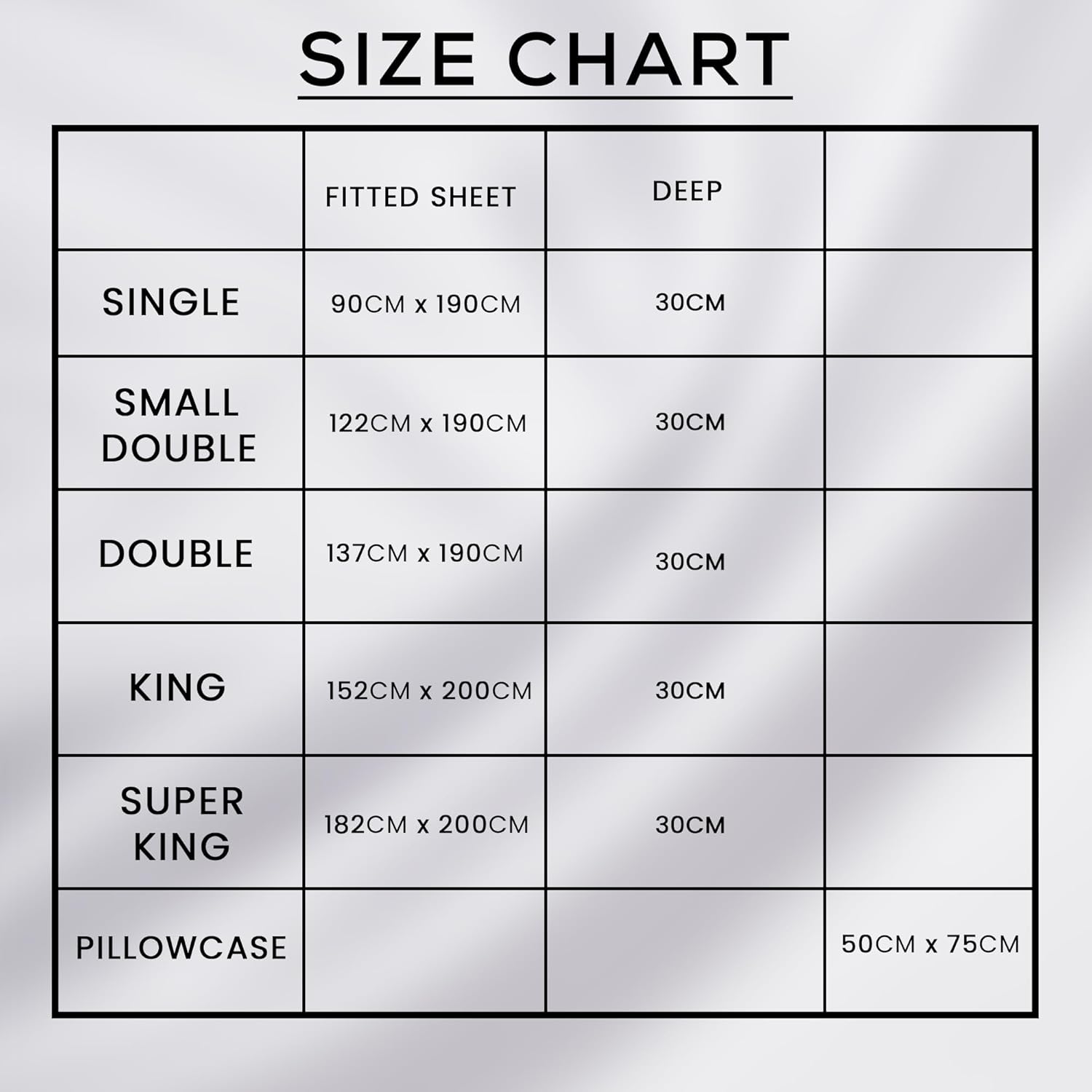 PACKAGE CONTAINS: 1 x Deep Sheet Fitted Single (90x190cm + 30cm deep) comes with beautiful packing. (Pillowcases aren’t included)