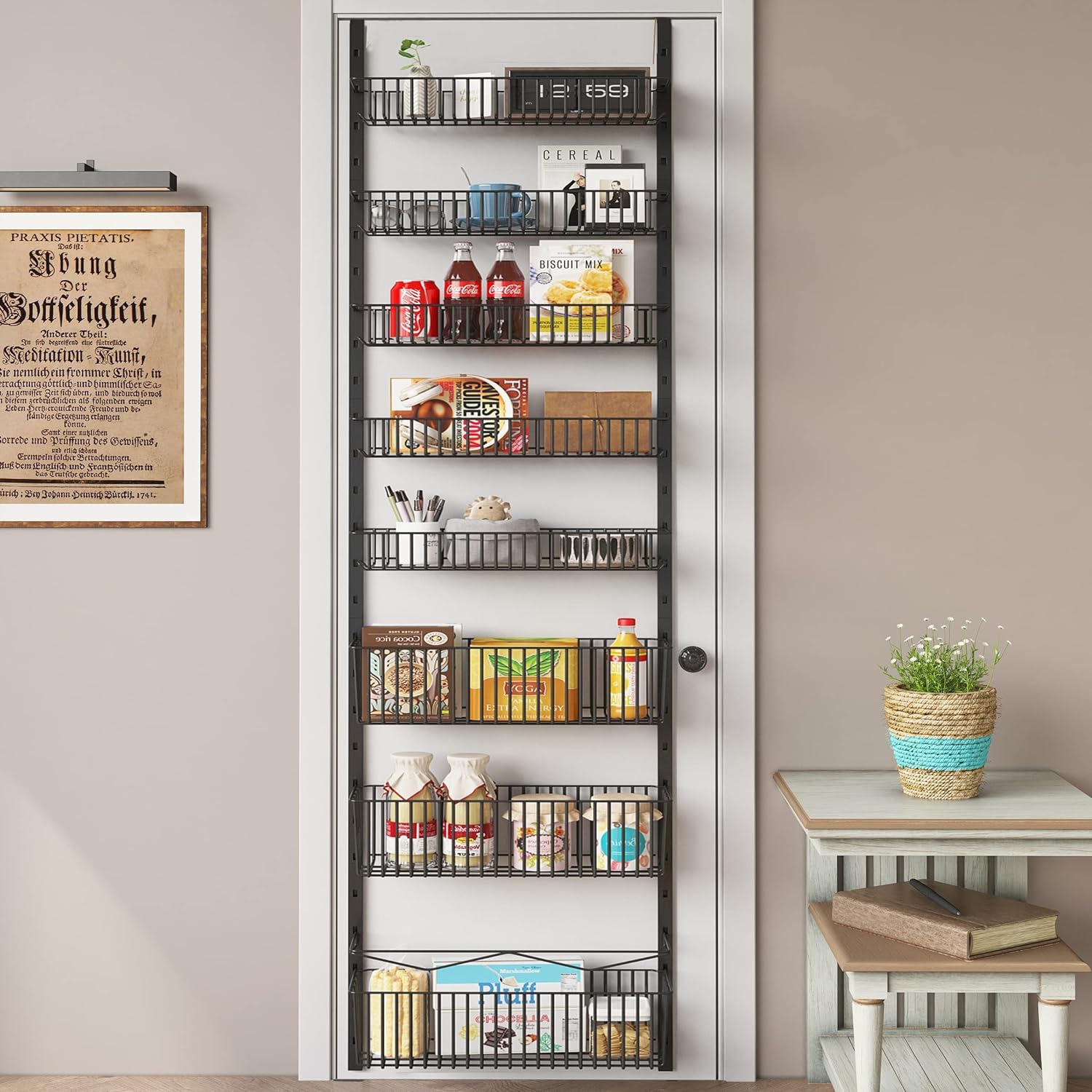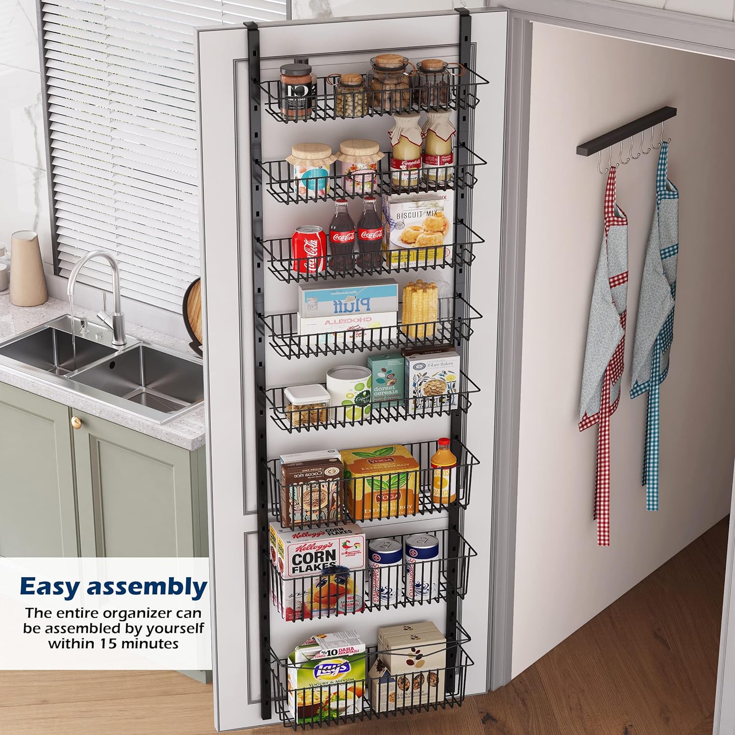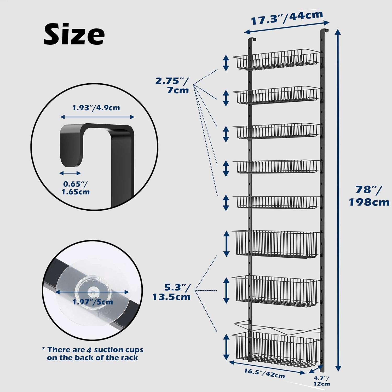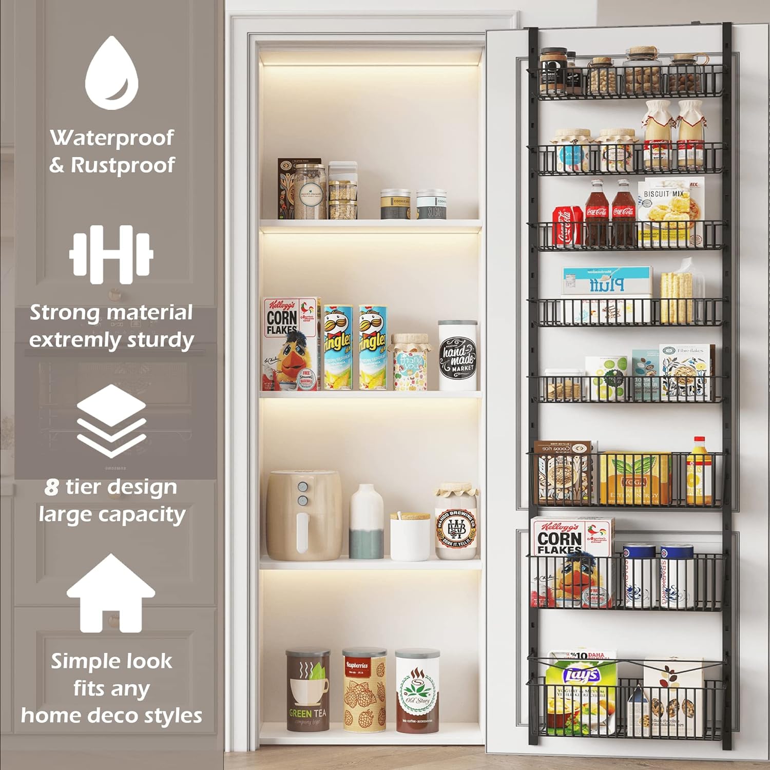 Large Storage Capacity:8 layer design over the door pantry organizer can save your sapce greatly, 8-tier large capacity can store your spice jar, cans, sundries. Make your space more tidy, also easy to place and take items, meet your family’s needs.