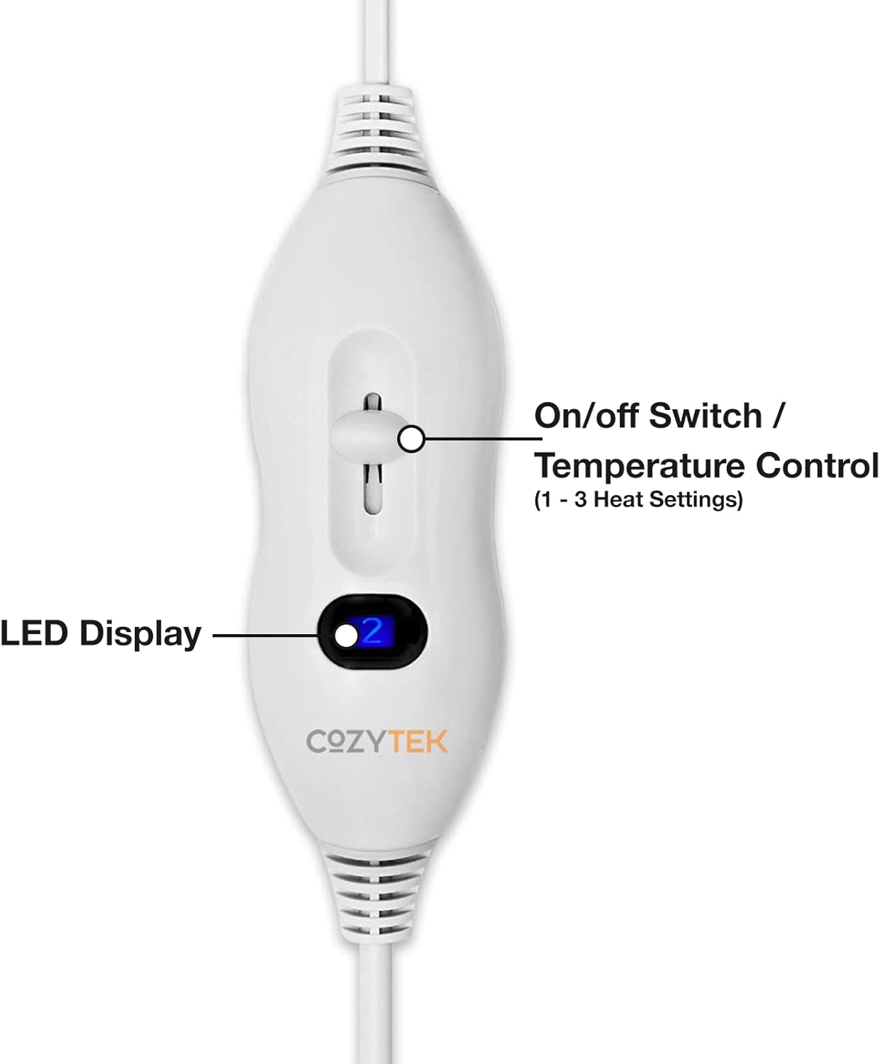 The Cozytek Blanket has a quick heat up time, and a clear LED Digital Display for your controller.