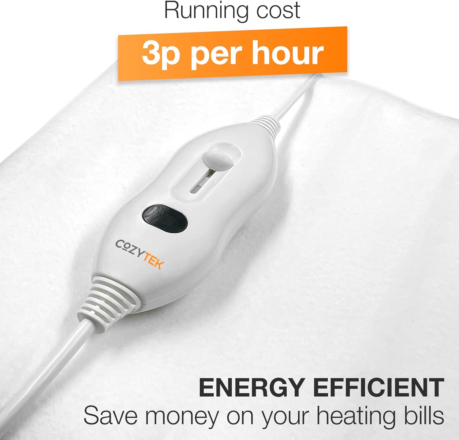 The Cozytek Double Electric Underblanket has: 3 Heating Settings, a quick heat up time, and a long 2.3m electric power cable