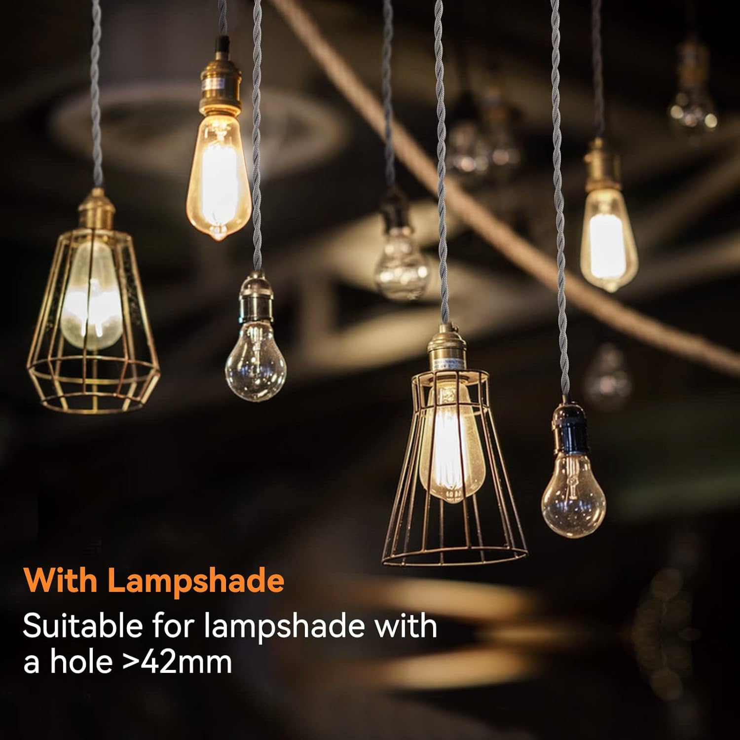 COZZY Vintage Ceiling pendant light fitting, Light Grey Twisted Braided Flex,E27 Lamp Holder Suspended Pendant Light Fitting Kit-Satin Nickel