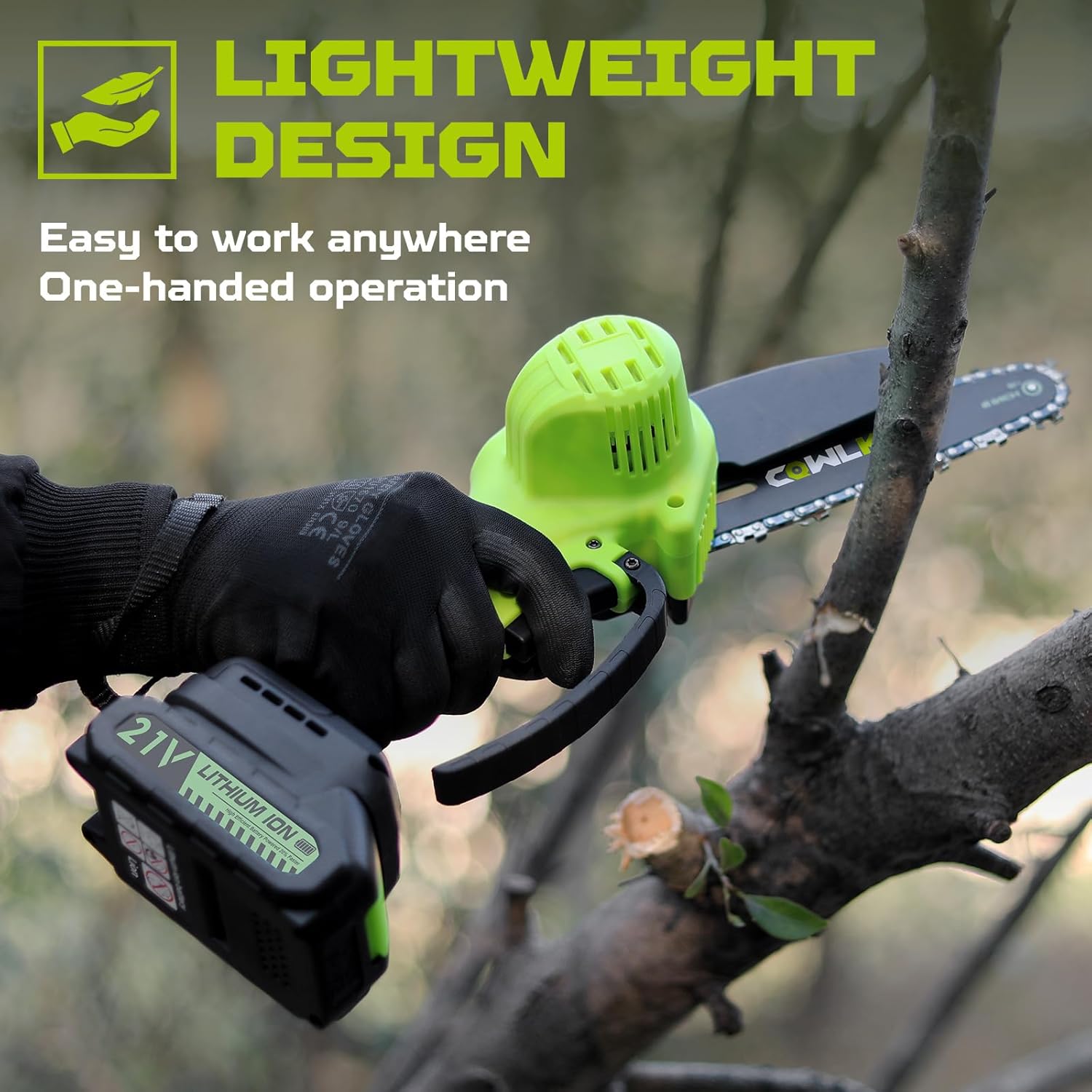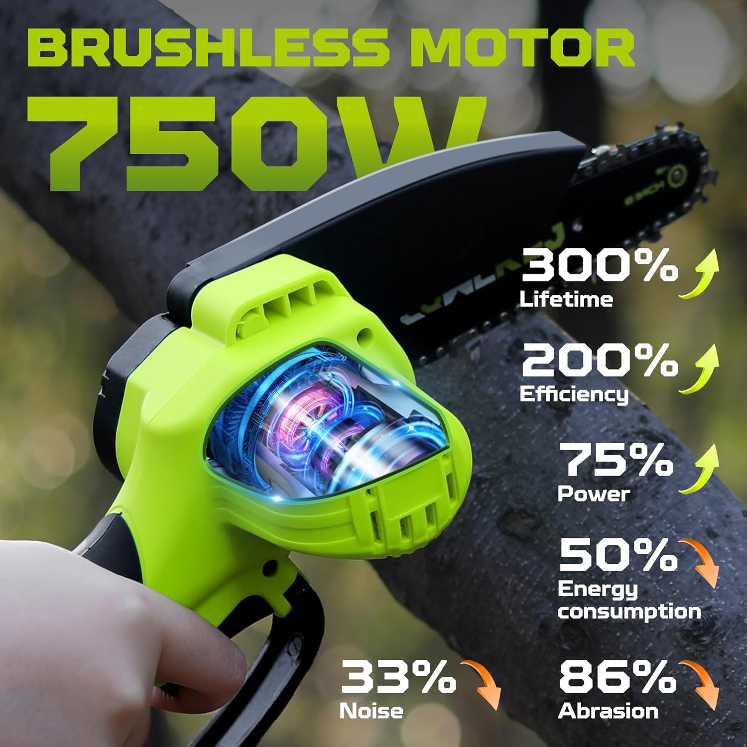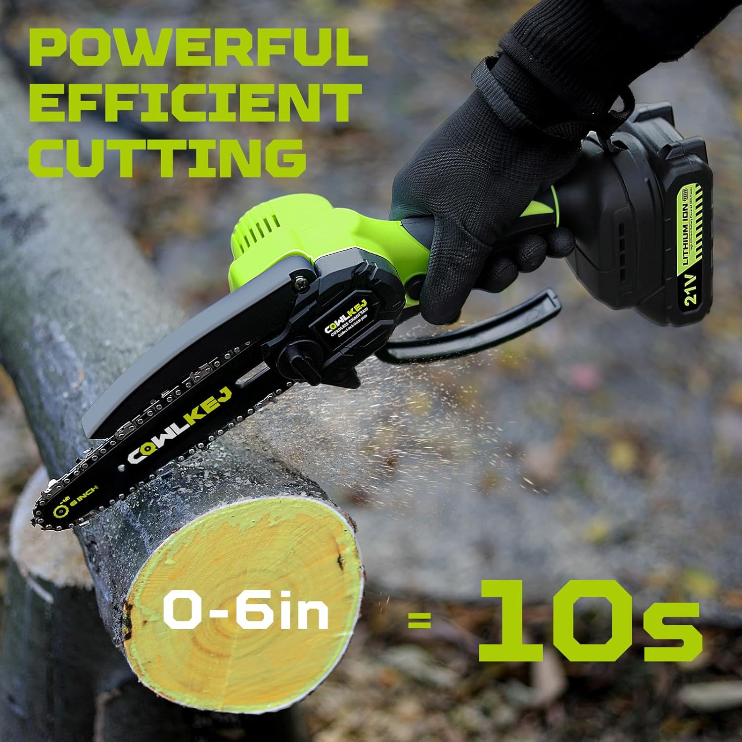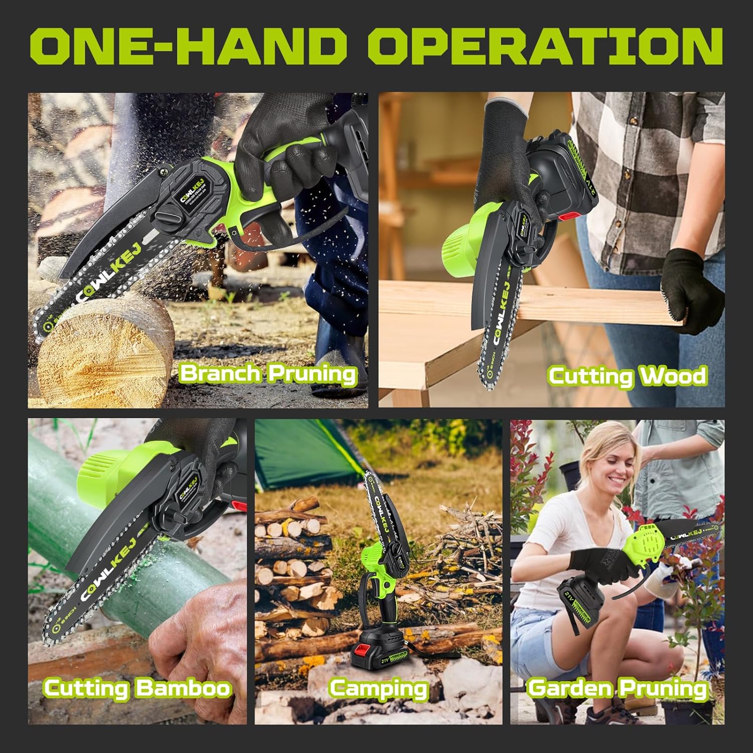 ✔✔【Efficient Cutting with Brushless Motor】This compact cordless chainsaw utilises advanced chip technology and a high-quality gear design to ensure smooth and efficient cutting. Capable of swiftly cutting through tree limbs up to 6″ in diameter, this mini chainsaw takes just about 10 seconds to complete the task.