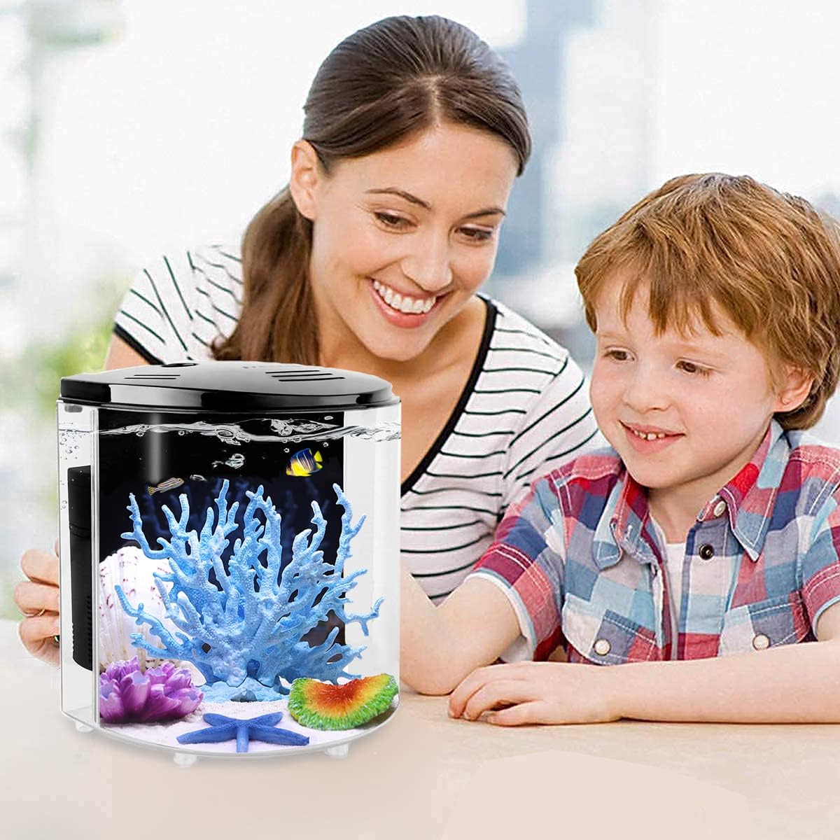Craftsboys Fish Tank 4.5L Betta Aquarium Starter Kits with Backwall Filter, Led Light. Clear Acrylic Fish Tank for Small Fish (Black, Half-Moon)