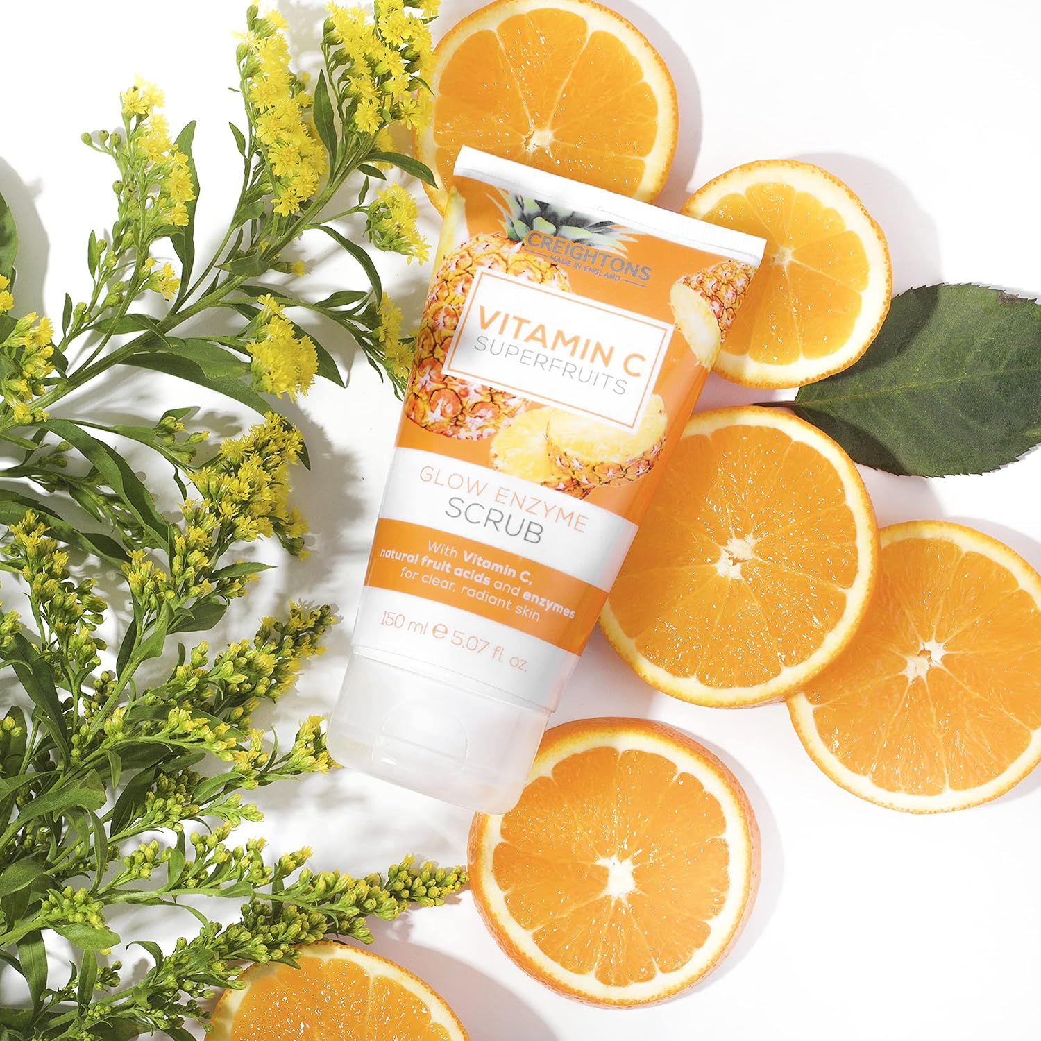 (as of [price_update_date] – DetailsCreightons Vitamin C Superfruits Glow Enzyme Scrub (150ml) – An energising and exfoliating scrub with vitamin C, natural fruit acids and enzymes for clearer, radiant skin. An energising and exfoliating scrub. Infused with vitamin C, natural fruit acids and enzymes to effectively cleanse, exfoliate for healthier looking skin. Made in England. DIRECTIONS: Apply to wet skin, massage in gently, rinse thoroughly. WARNINGS: Do not use on broken, damaged or irritated skin. Avoid contact with the eyes. If contact occurs, rinse thoroughly with water. Discontinue use if irritation develops. Keep out of reach of children.