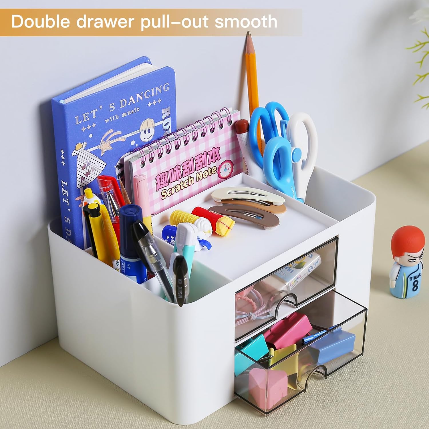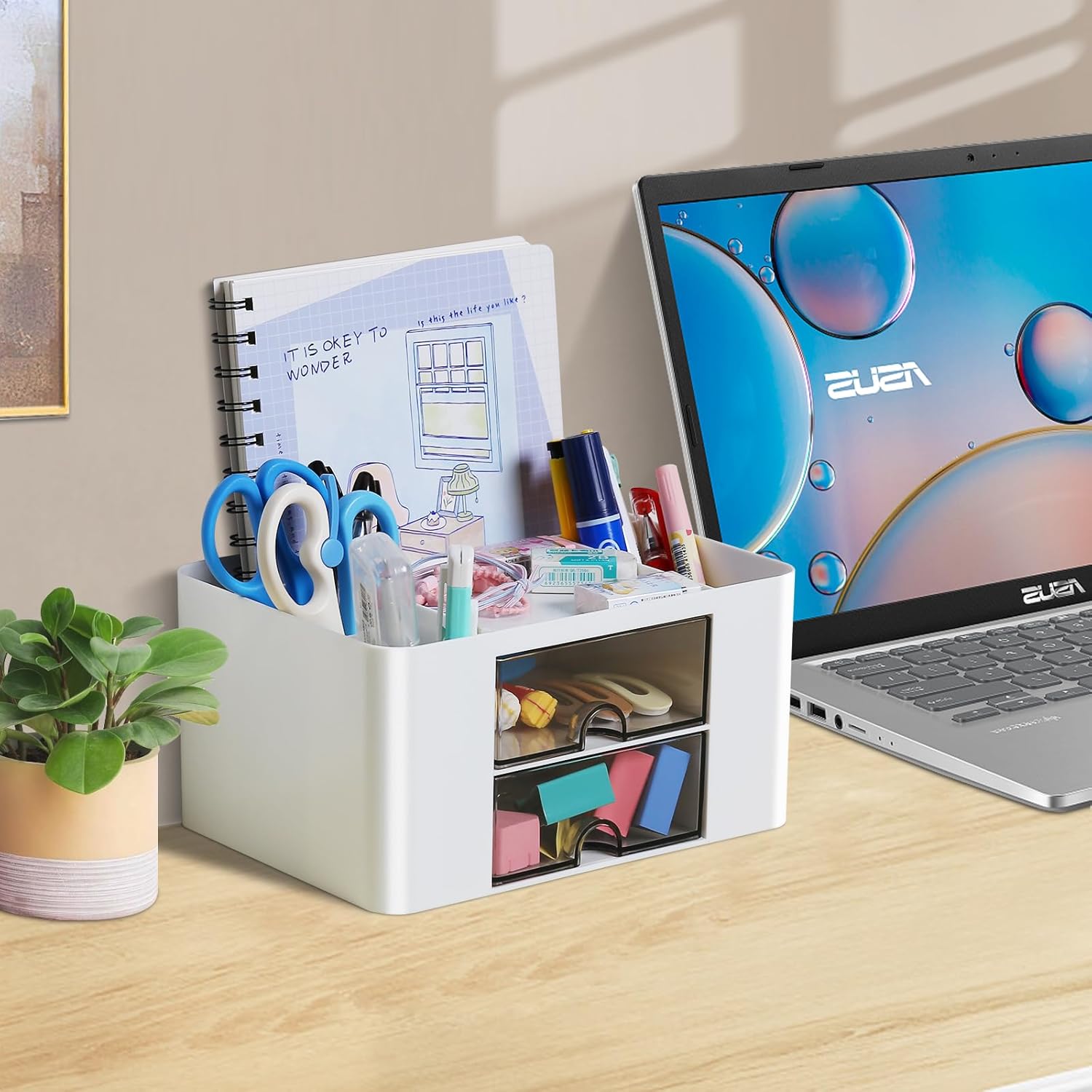 CRESZZLE White Desk Organizer with Drawers – Neat Stationery Storage – Ideal for Teachers, Students – Great Gift – Office, School, Home Organization
