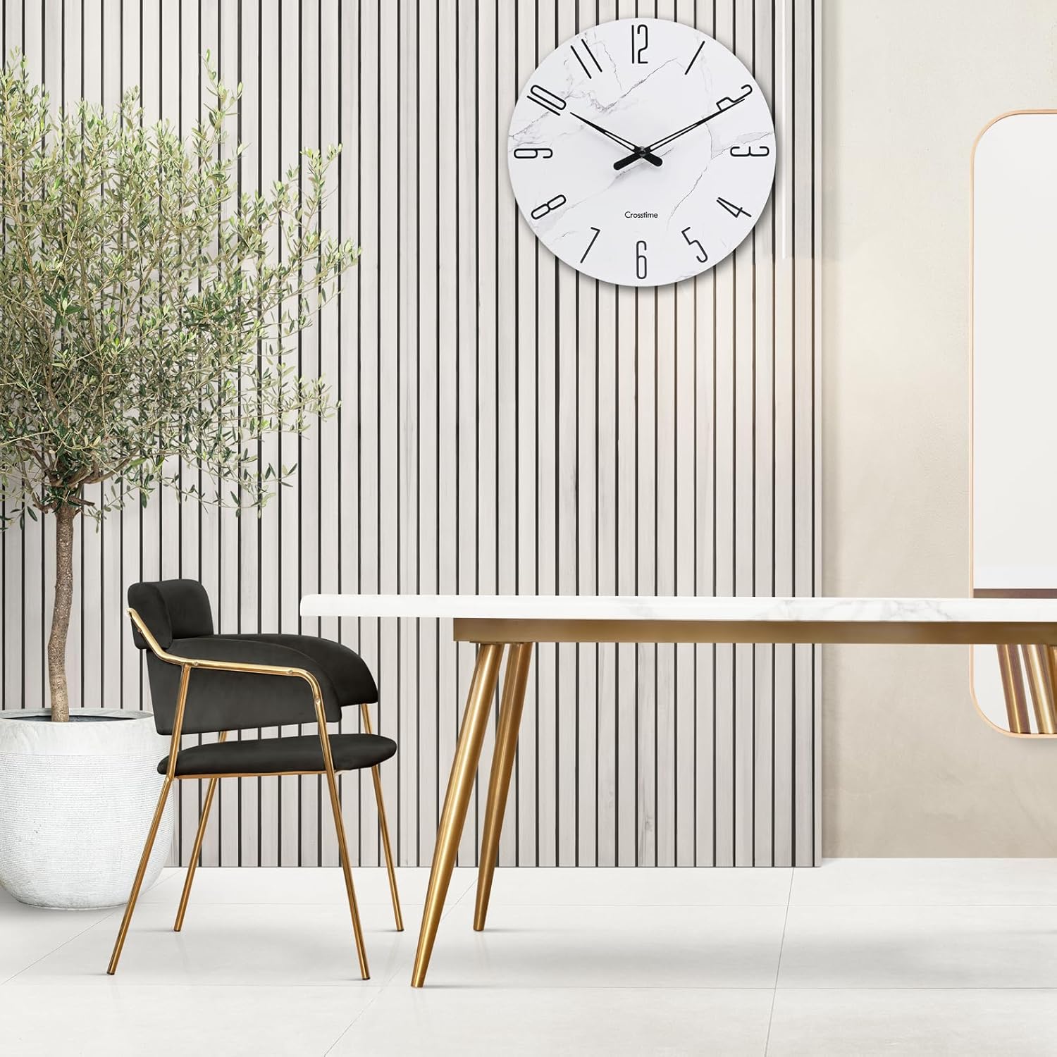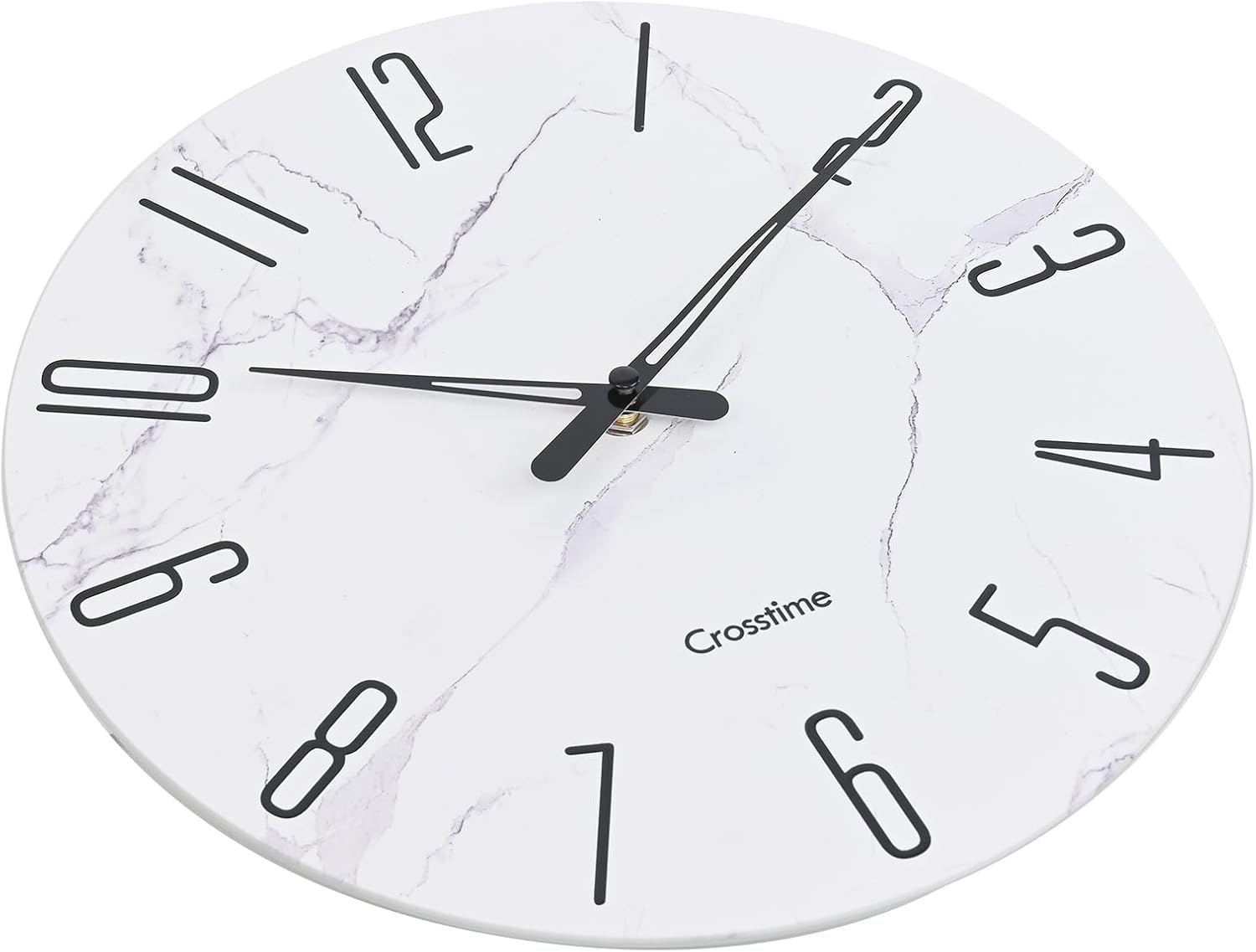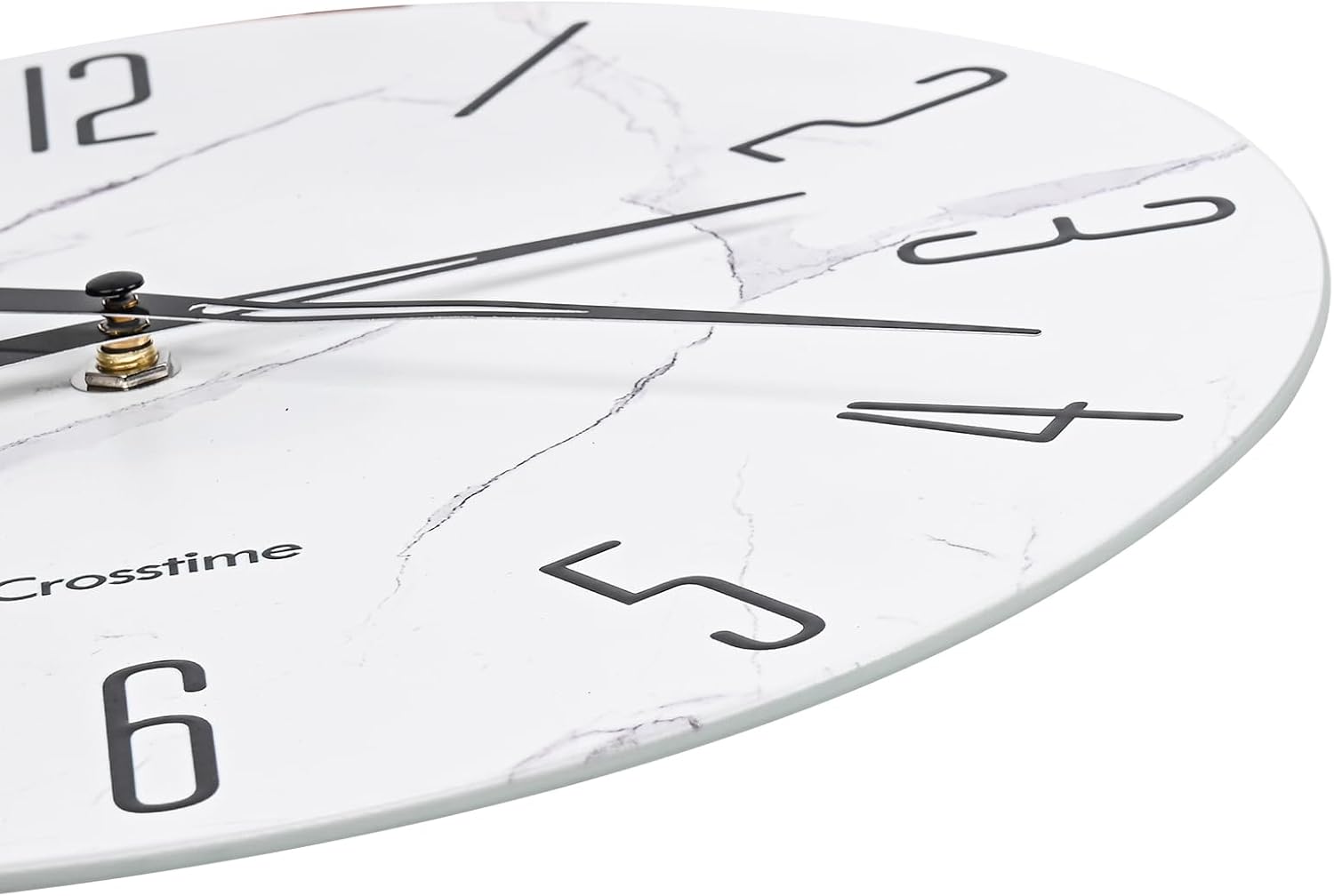Crosstime Modern Wall Clock 12″ – Silent Non Ticking Glass Clocks Simple Minimalist Decorative for Kitchen Bathroom Living Room Bedroom Office Decor,30cm Marble White