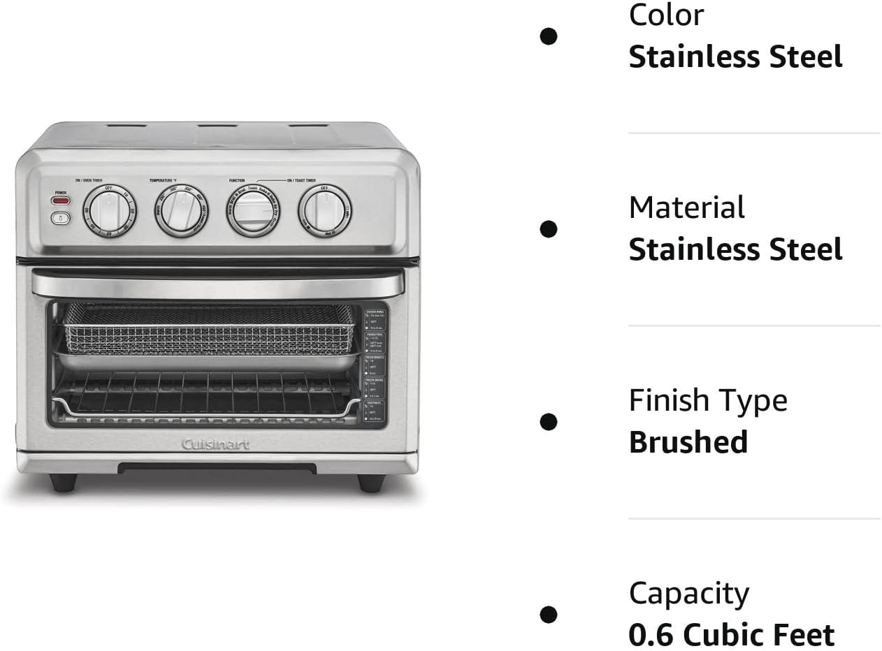 Cuisinart Air Fryer + Convection Toaster Oven, 8-1 Oven with Bake, Grill, Broil & Warm Options, Stainless Steel, TOA-70