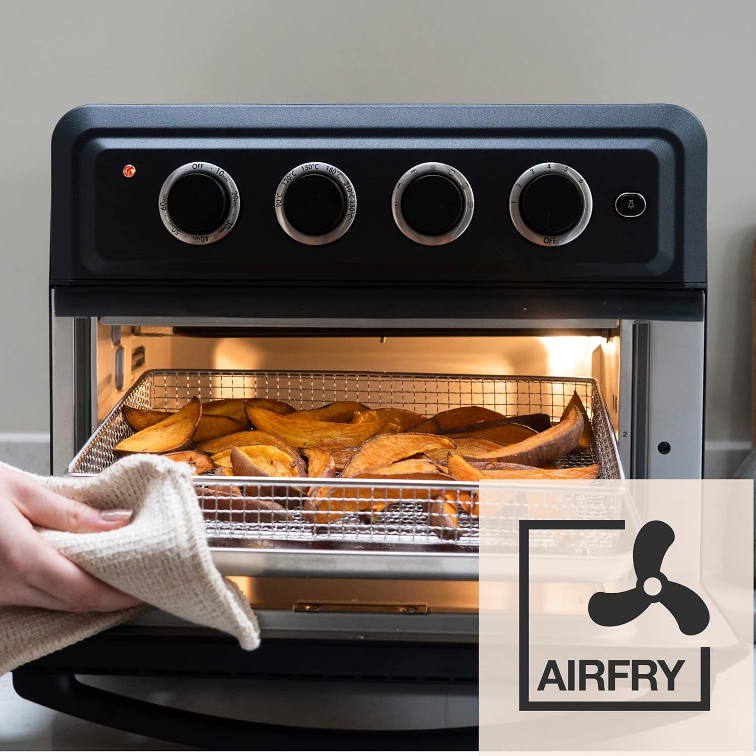 6 temperature settings, ranging from 90˚C keep warm to 230˚C fast air fry