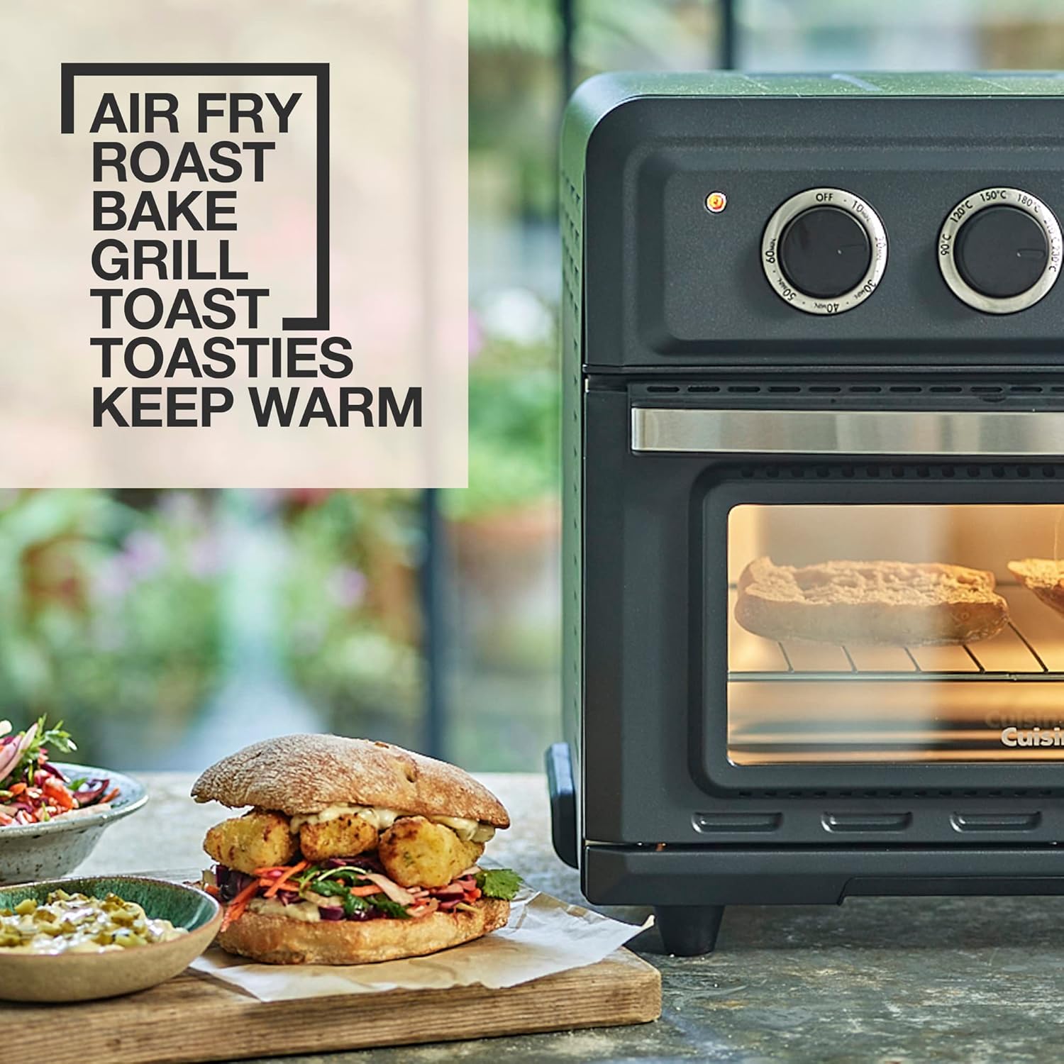 Cuisinart Air Fryer Mini Oven, 7 Functions, Air Fry, Roast, Bake, Grill, Toasties, Toast & Keep Warm, Slate Grey, TOA60U