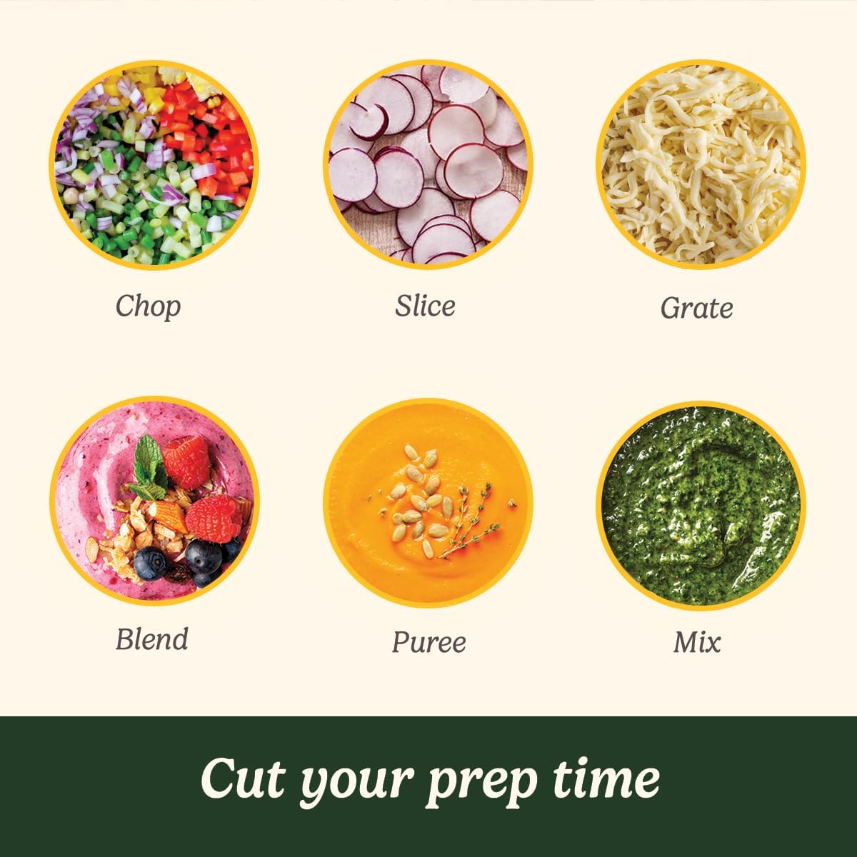 Take the hassle out of food prep with this compact food processor – mince, grate, chop, slice, puree, mix, blend, and more