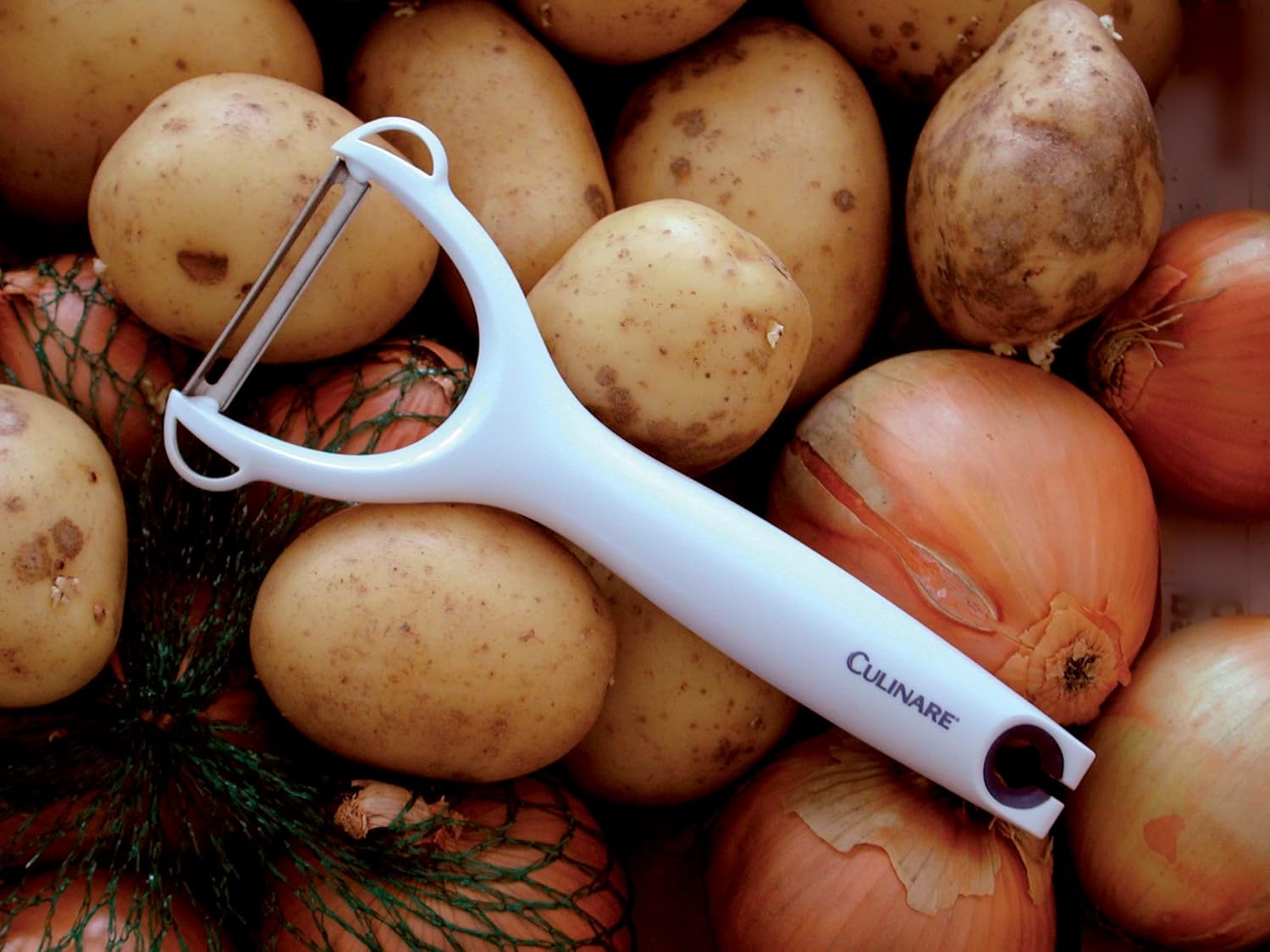 The Culinare Safety Peeler allows you to more securely peel your fruits and vegetables with its Y shape and firm handle. Also includes a blemish removal tool.