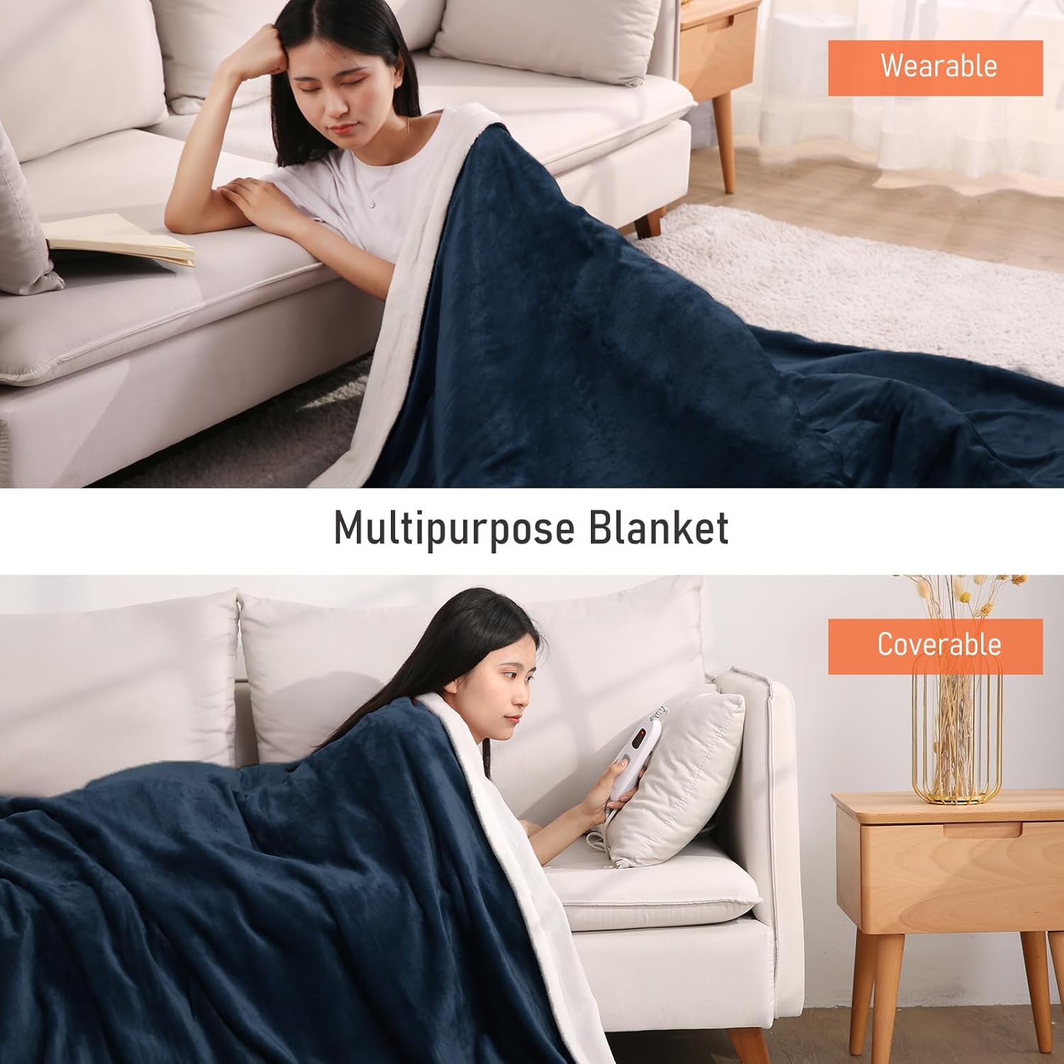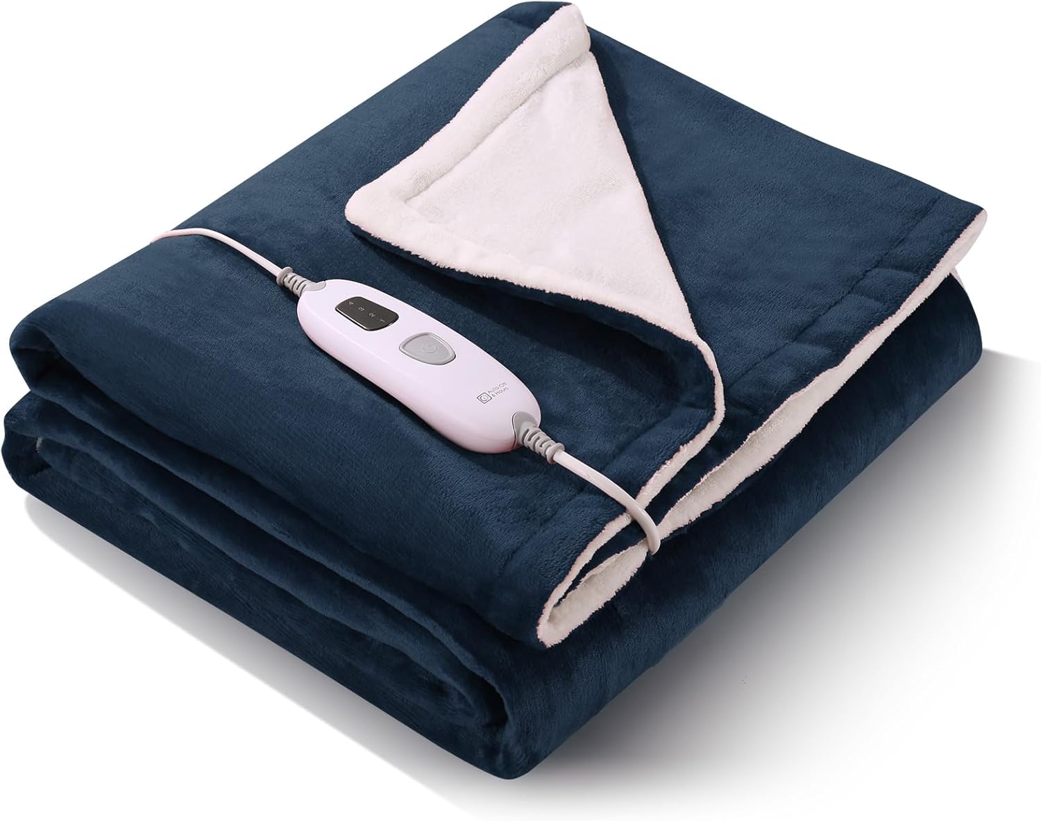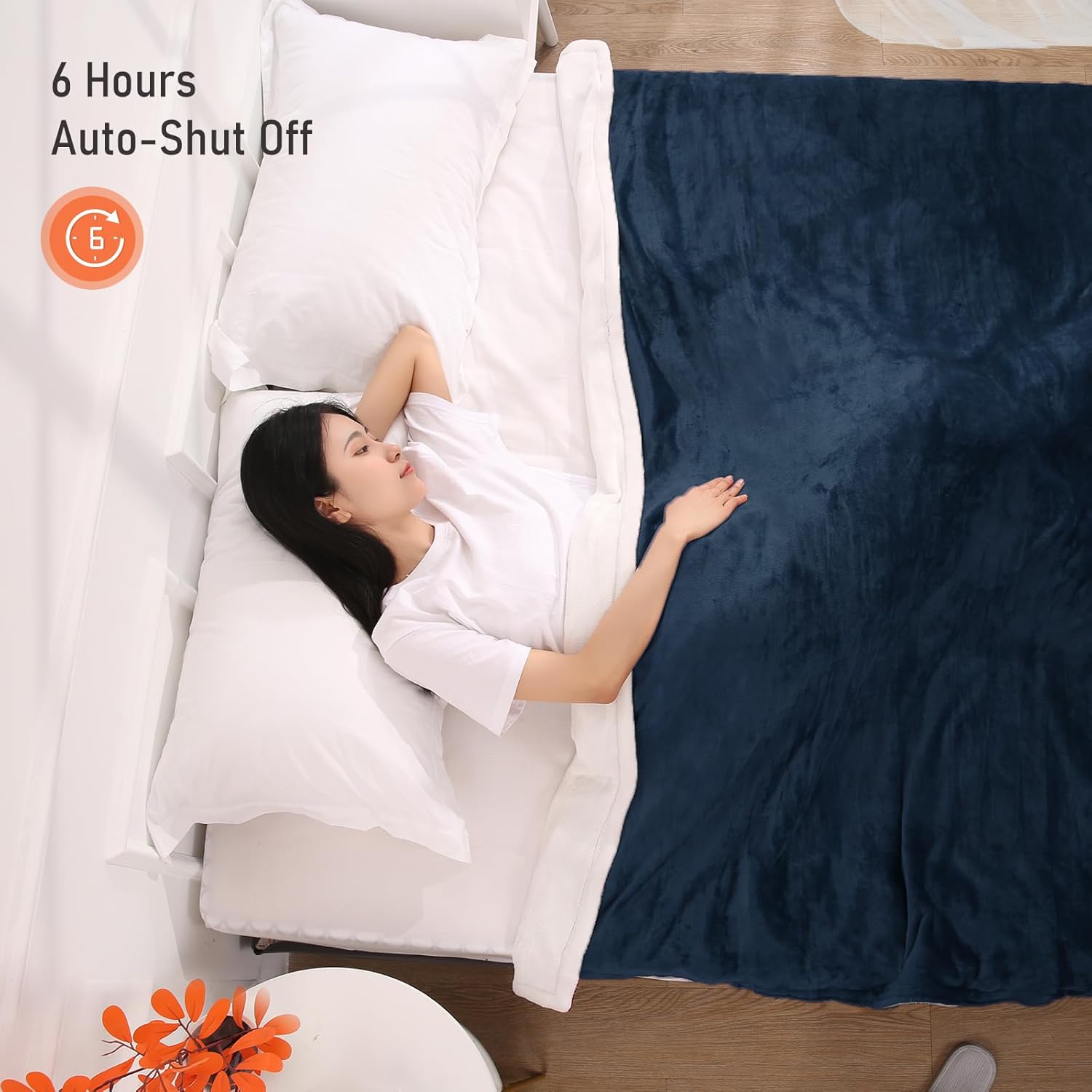CURECURE Heated Throw Blanket Throw 130x180cm Flannel Blanket, 130x180cm Soft Flannel Warm with 6 Hours Auto Off & 4 Heat Settings, Home Office Use – Nevy Blue