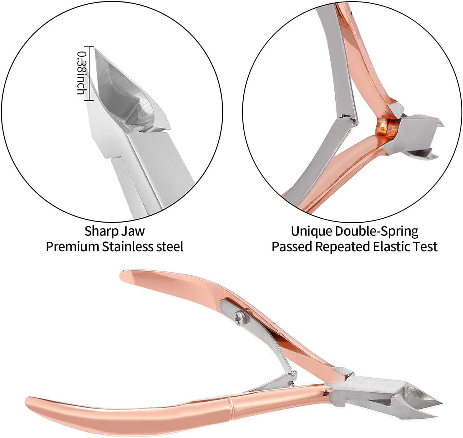 Unique spring design has passed our repeated elastic test Sharp finished tips for precise cutting of hangnails and ragged cuticles.