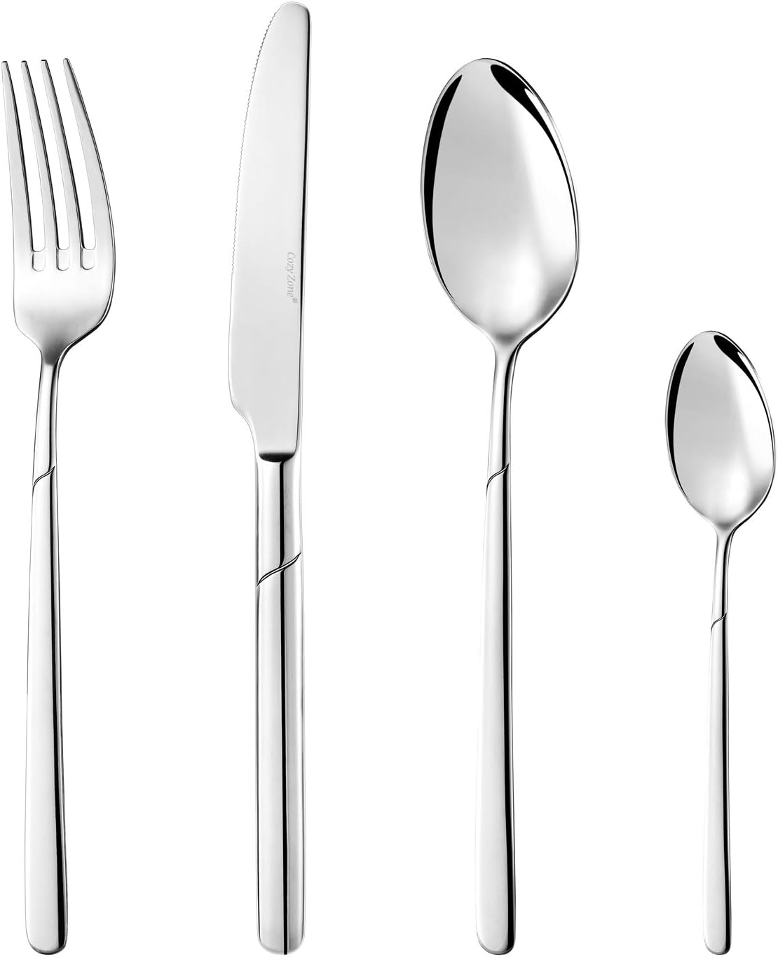 Cutlery Set 24 Piece,Cozy Zone Stainless Steel Tableware for 6, Modern Design, Sharp Knives and Rounded Spoons, Dishwasher Safe, Suitable for Dinner Parties and Everyday Use