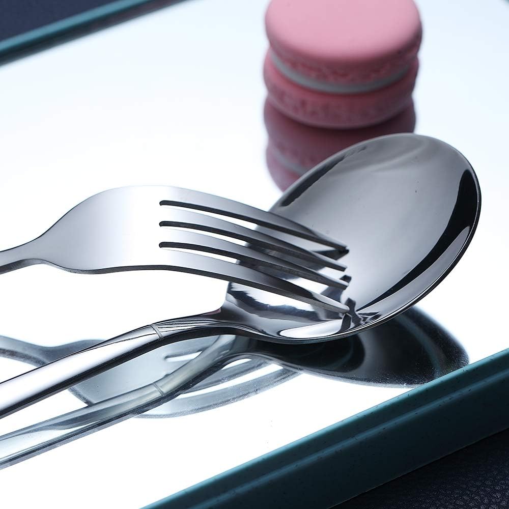 Healthy materials: The cutlery set is made of high-quality 18/0 stainless steel solid, without any toxic materials, rust-proof and nickel-free, healthy and durable in daily use, easy to clean and safe to use the dishwasher