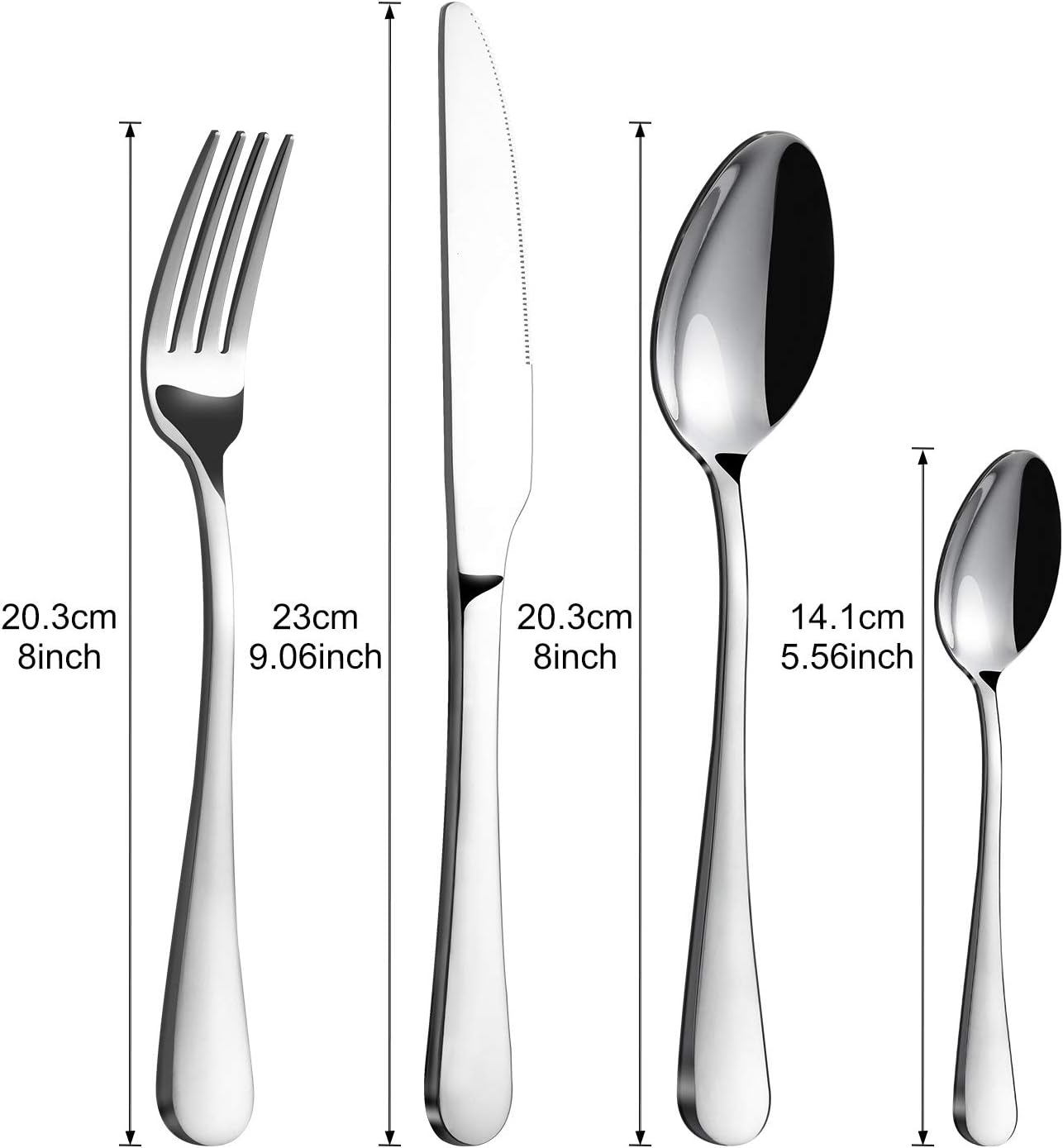 【Health and Durable】The silverware set is made of quality food grade stainless steel which ensure health and durability, non toxic, nickel free, corrosion resistant and dishwasher safe.