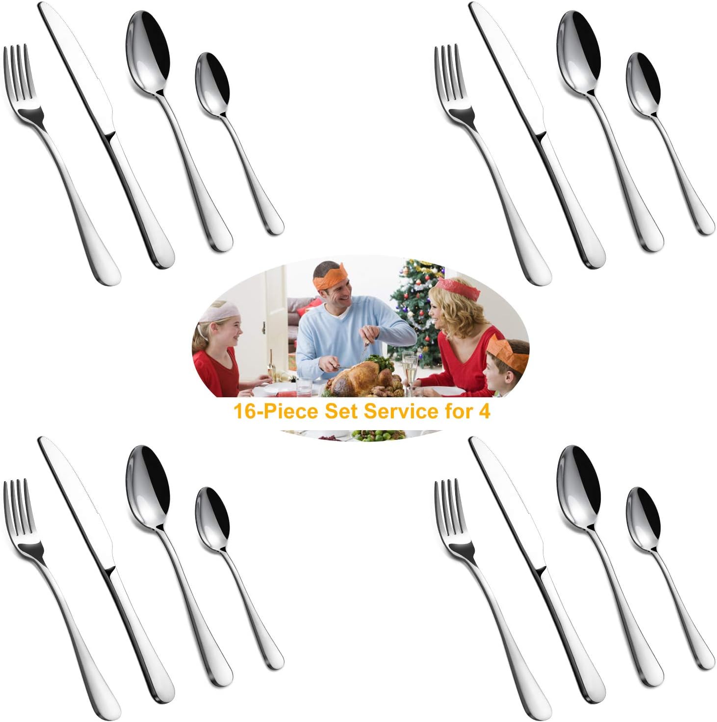 Cutlery Set, BEWOS 16 Piece Stainless Steel Flatware Set, Tableware Silverware Set with Spoon Knife and Fork Set, Service for 4, Dishwasher Safe/Easy Clean, Mirror Polished