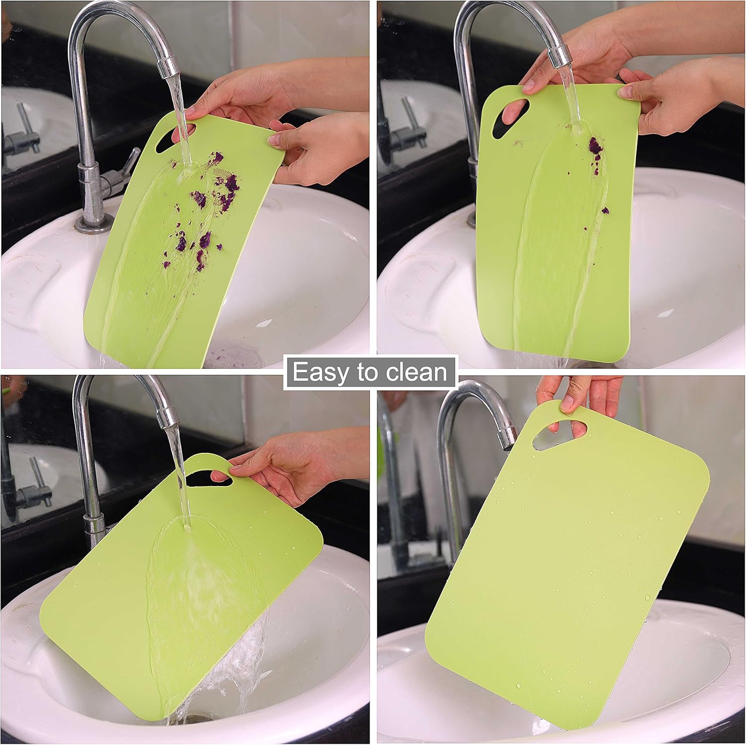 SAFE: made from BPA-free plastic which provide flexible, durable and knife-friendly cutting surface for food preparation. Suitable for all your slicing and dicing needs in your daily busy kitchen.