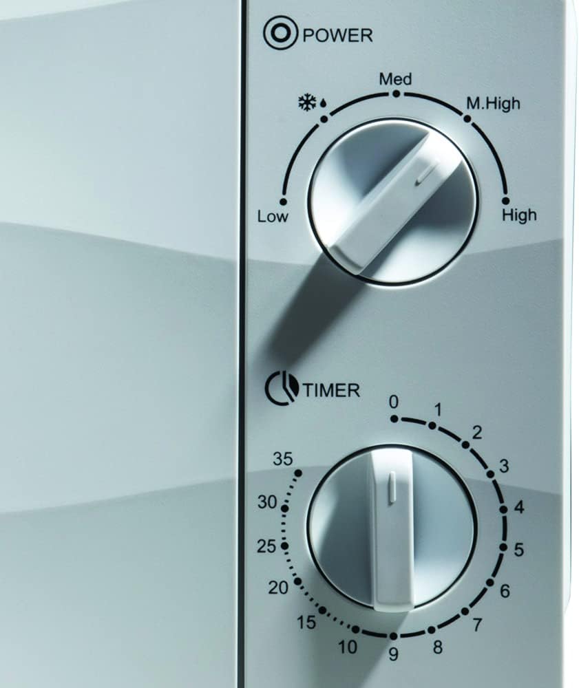 35 MINUTE MANUAL TIMER- Control just how long you need for your food to cook using the dial on the front of the microwave, once the timer is up the microwave will beep to alert you.