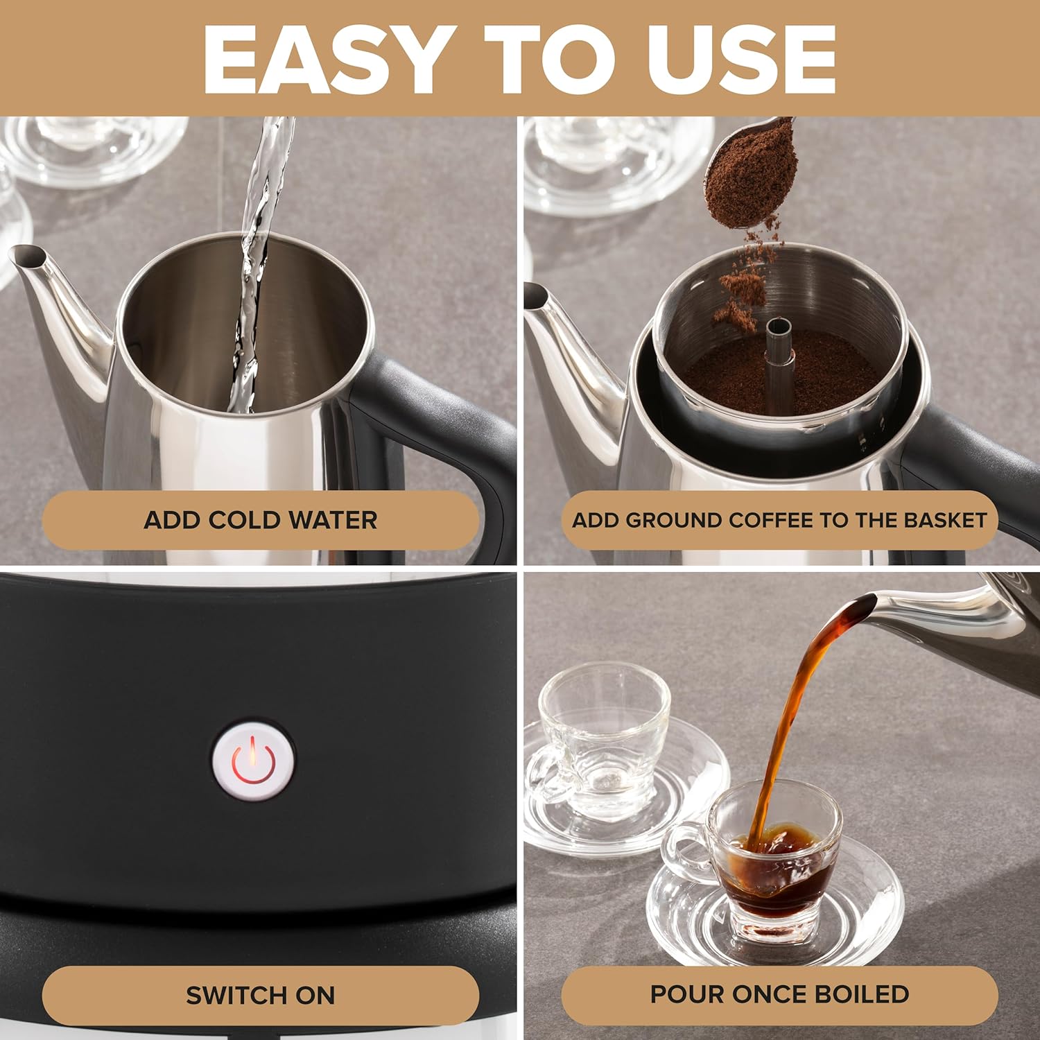 USER-FRIENDLY OPERATION – With a simple On/Off button and a power indicator light, brewing your favourite coffee is a breeze. The removable basket facilitates easy cleaning, and the 360-degree swivel base ensures convenient access from any angle
