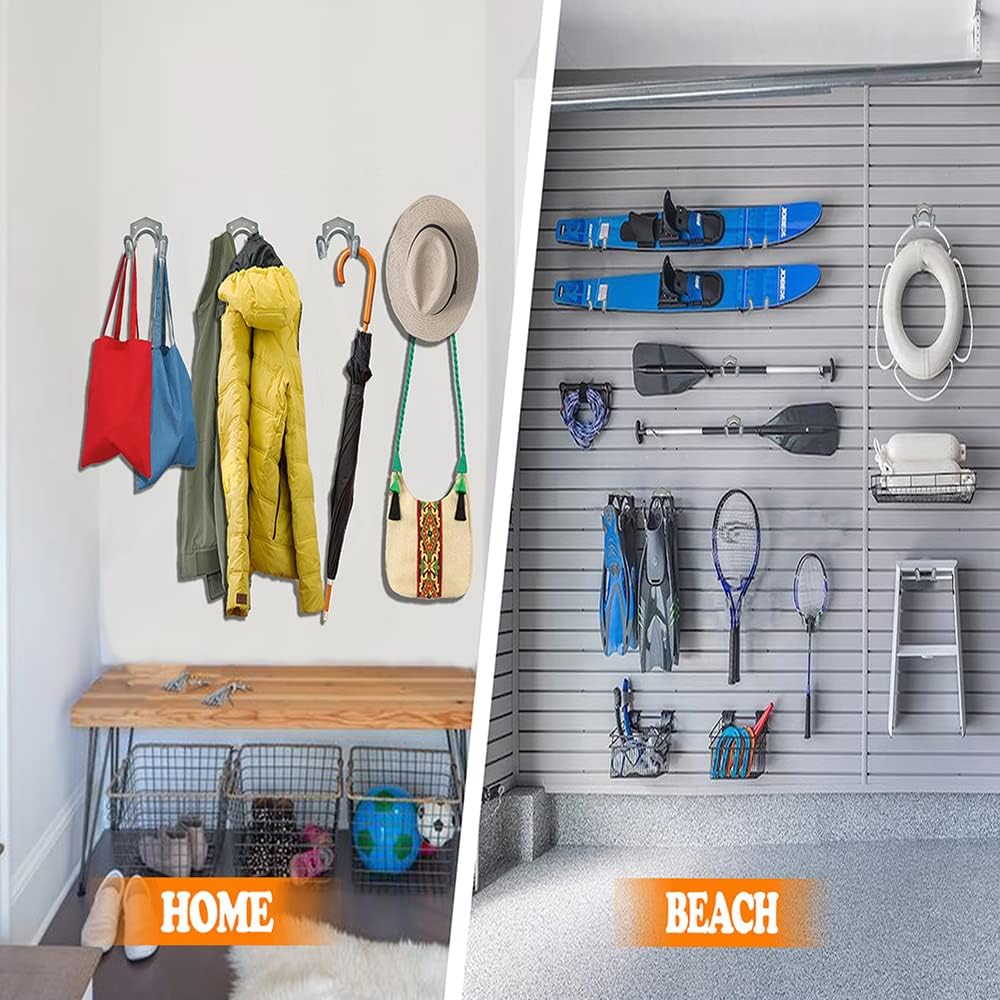 These Hooks come with pre-drilled holes and necessary accessories that include 24pc of screws and 24pc of wall plugs, just need a screwdriver or drill to fix them up. The garage hooks can be easily installed on most of the wall surfaces.