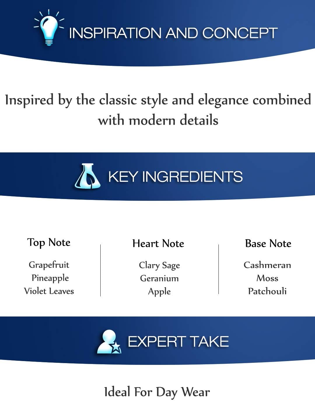 CITRUSY & WOODY PROFILE: A symphony of Grapefruit, Pineapple and Violet leaves as top notes, Clary Sage, Geranium and Apple as heart notes, and Cashmeran, Mossy notes, Patchouli as base notes.