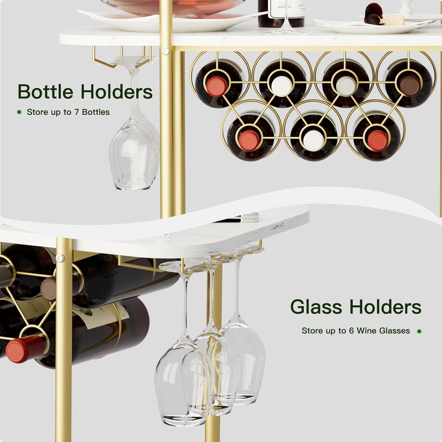 💚 Large Storage Capacity: Dimension: 40x78x84cm; Advised Load: 30KG each shelf. Holds up to 7 wine bottles and 6 wine glasses.