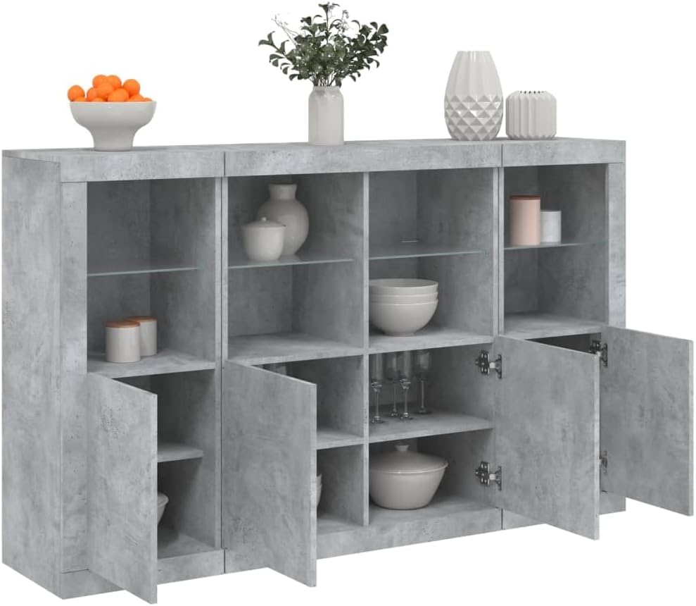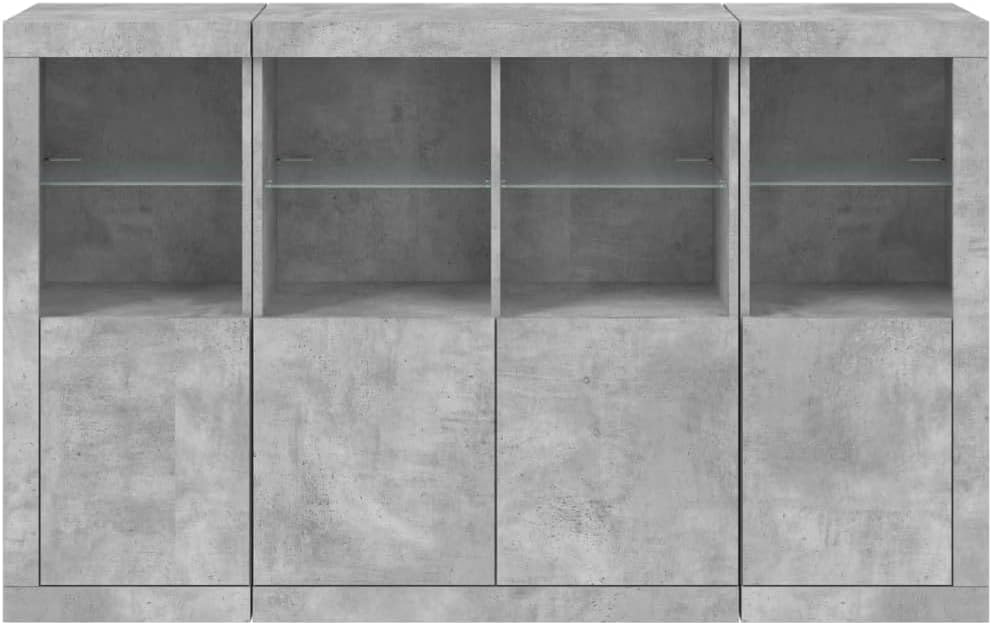 Furniture Cabinets & Storage Buffets & Sideboards-Sideboards with LED Lights 3 pcs Concrete Grey Engineered Wood-Decorate your room with these modern sideboards with LED lights, they easily blend with furniture in any style at your house. Durable material: The engineered wood is of exceptional quality with a smooth surface and features strength, stability and resistance to moisture.Ample storage space: These buffets provide plenty of storage space for keeping your magazines, books, remote controls and other small items well-organised and within easy reach.Displaying function: The sturdy top of sideboard cabinets is ideal for displaying decorative objects, photo frames, or potted plants.Adjustable LED lights: These storage cabinets are equipped with RGB LED lights, which have different menus to change the light colour and adjust it automatically, decorating your home colourful and beautiful. Warning:To prevent it being overturned, this product must be used with the provided wall attachment device.Good to know:The product has a USB connector that requires a certified 5V USB power source (not included).