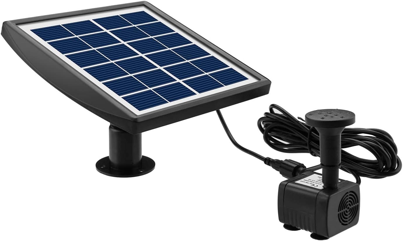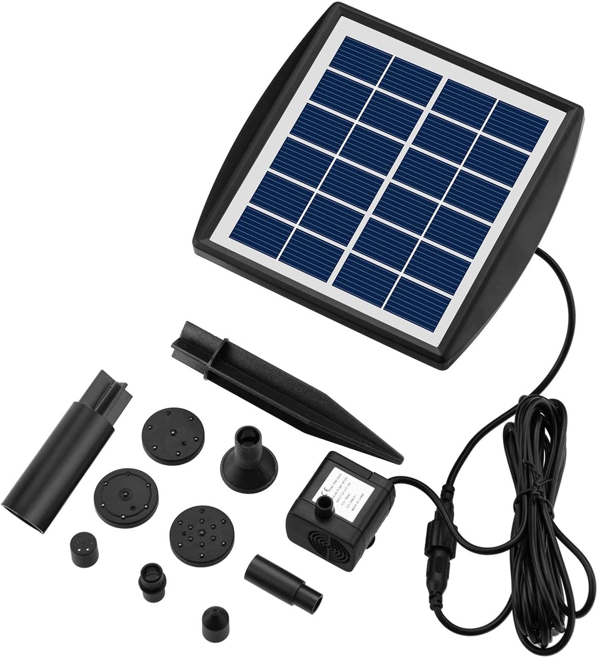 – The solar water pump kit with 4 nozzles allowing you to choose different water patterns at will. It runs by solar, no battery or electricity needed. Get the fountain on the sunshine, then it runs automatically in 3s when there’s sunlight exposure. Suitable for bird bath, fish tank, small pond, garden decoration, water circulation for oxygen, etc.