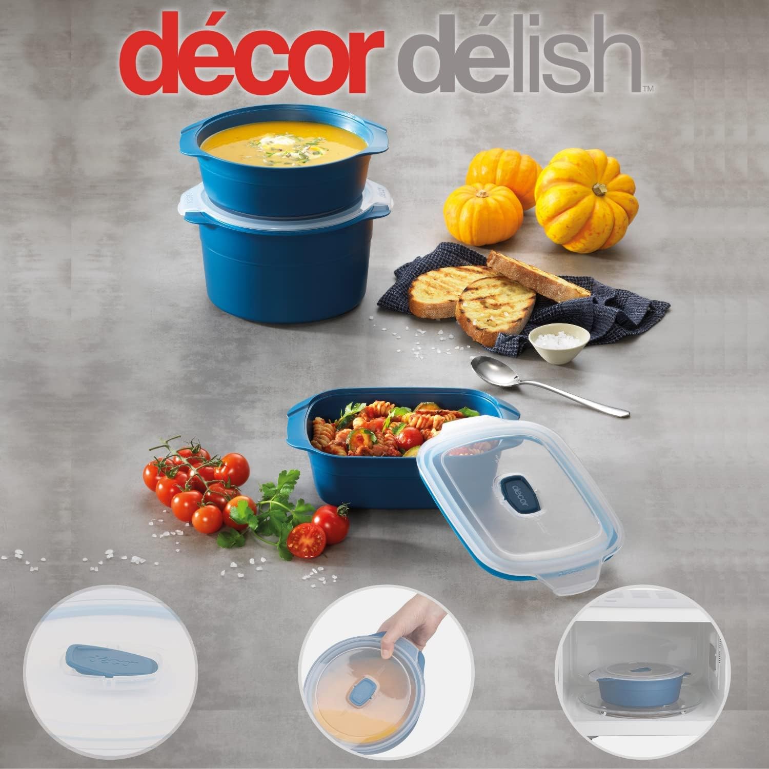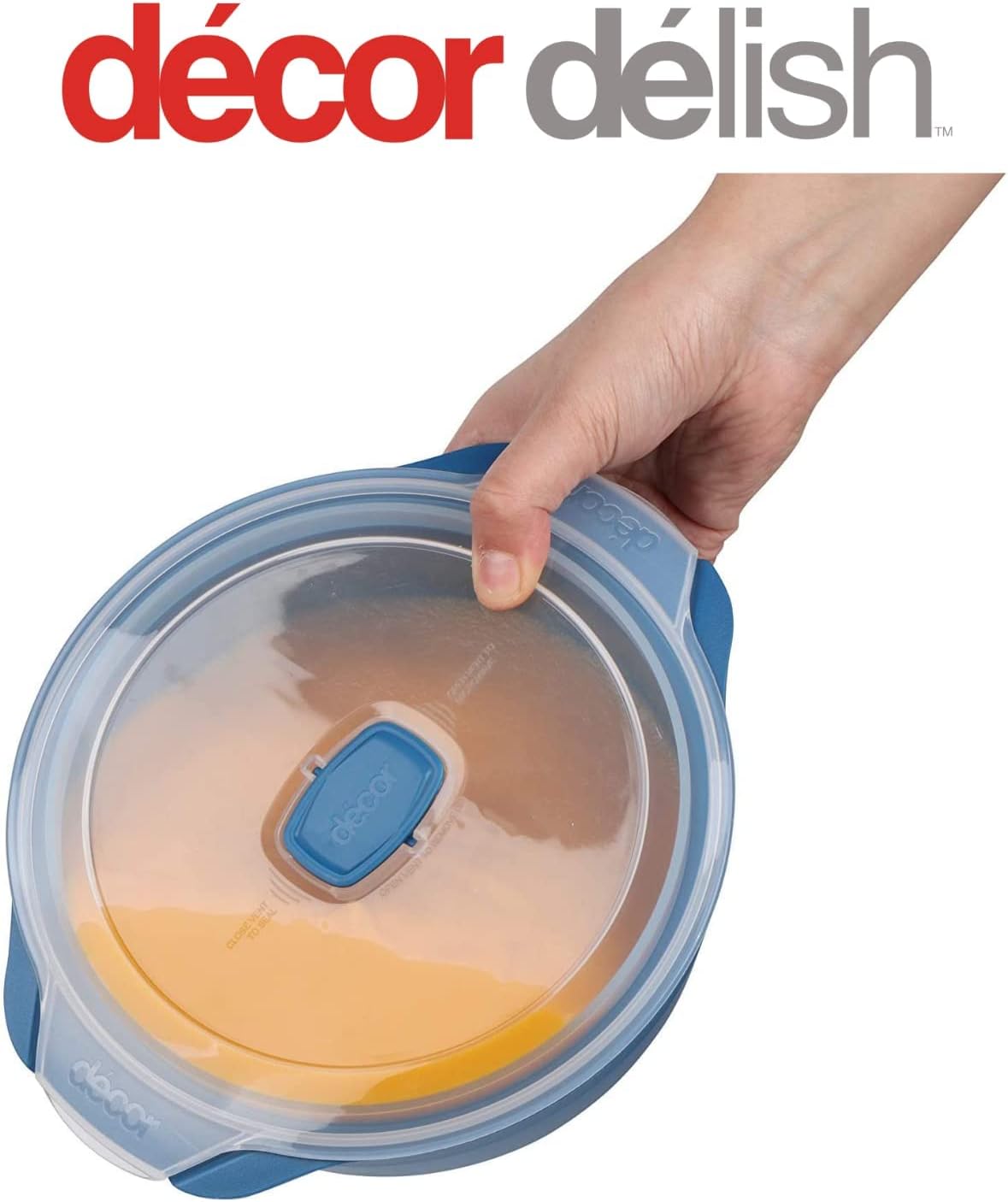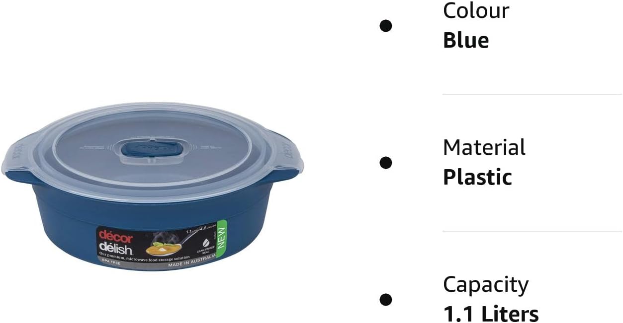 Décor Delish Premium Round Microwave Food Container | Perfect for Lunch on the Go, Meal Prep & Food Storage | Dishwasher & Freezer Safe | 1.1L Capacity – Blue
