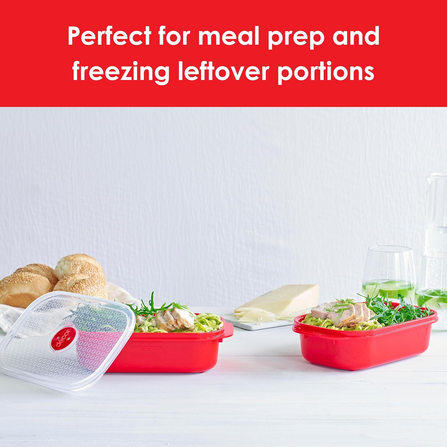 Décor Microwave Food Containers Set | 3 Pack – 3 x 900ml | Steam Release Vent | Dishwasher & Freezer Safe | Red