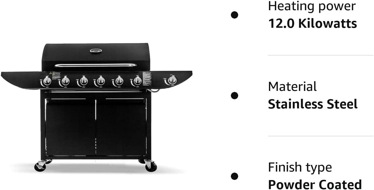 Deluxe 6+1 Gas Burner Grill BBQ Barbecue Side Burner Storage Garden Black