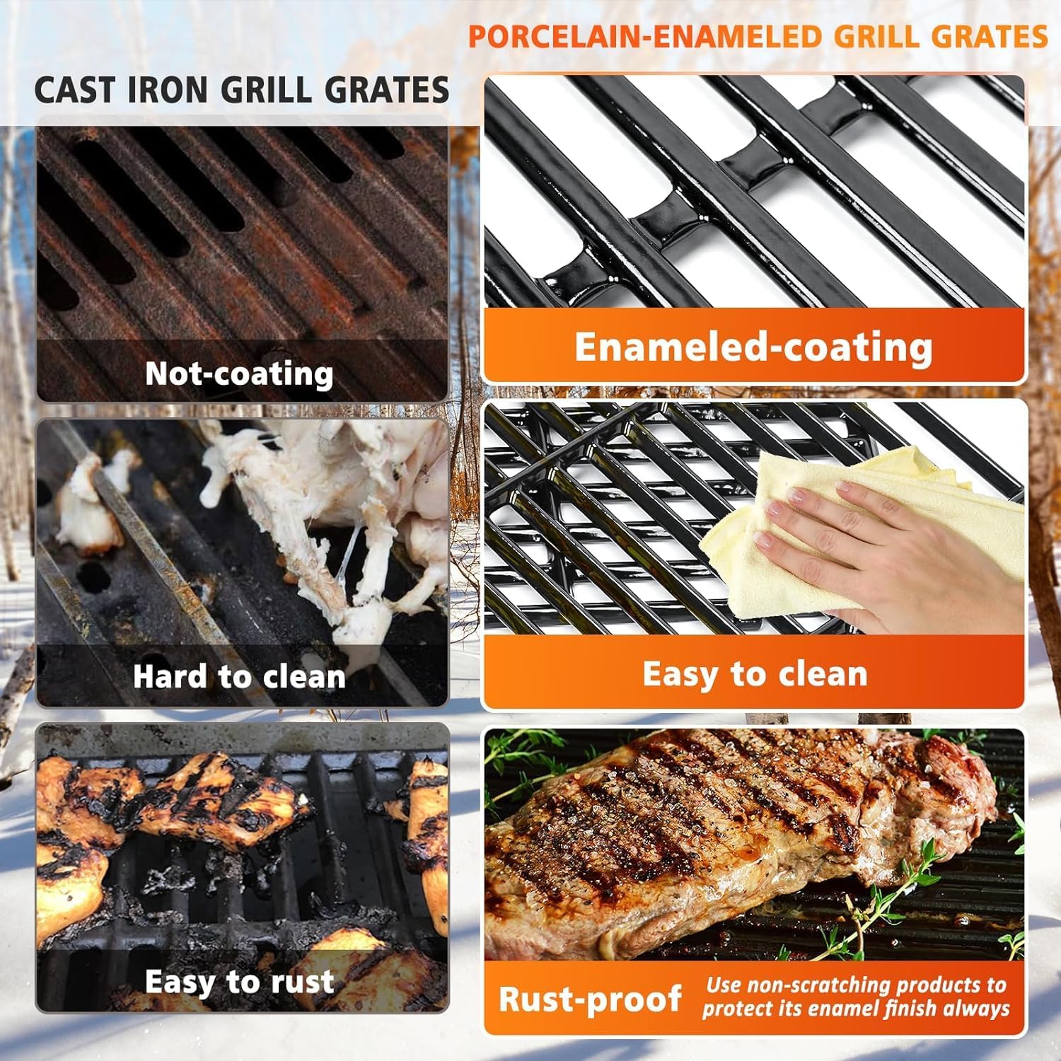 Denmay 7524 49.5cm Cast Iron Grill Grates Cooking Grid for Weber Genesis E-310/ E-320/ E-330, Genesis S-310/ S-320/ S-330, Genesis EP-310/ EP-320/ EP-330 Gas Grill, Doesn’t Fit Genesis II/LX E310/340