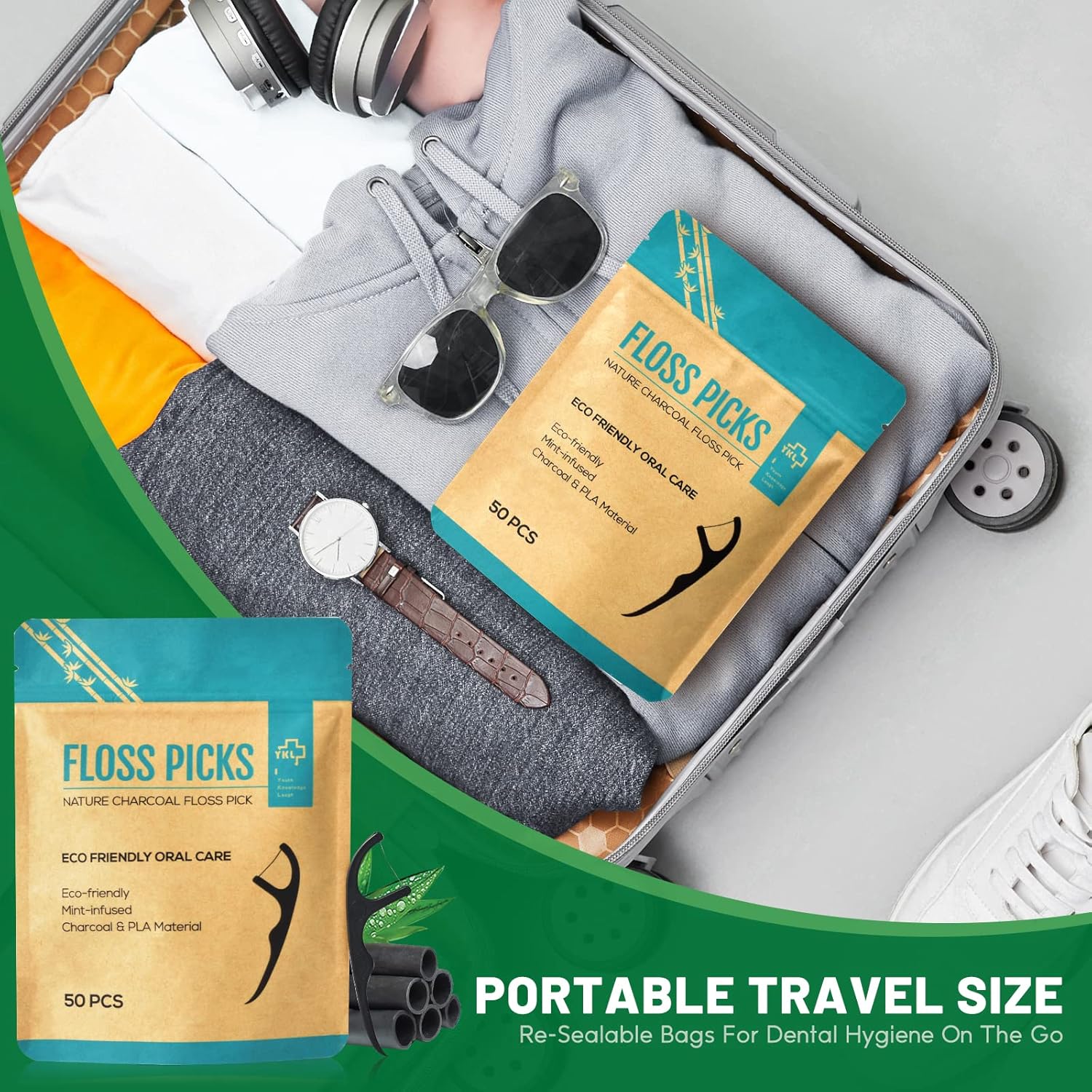 Bamboo Charcoal Dental Floss Stick-Natural Environmental Sustainable Mint Flavor Dental Floss Stick.