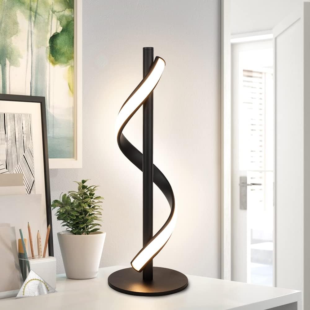 Depuley Spiral Table Lamp,10W Stable Bedside Lamps, Modern Minimalist Design ​Reading Light Eye-Caring, Curved Art Decorative Table Lamps for Living Room,Bedroom,Office,Warm White