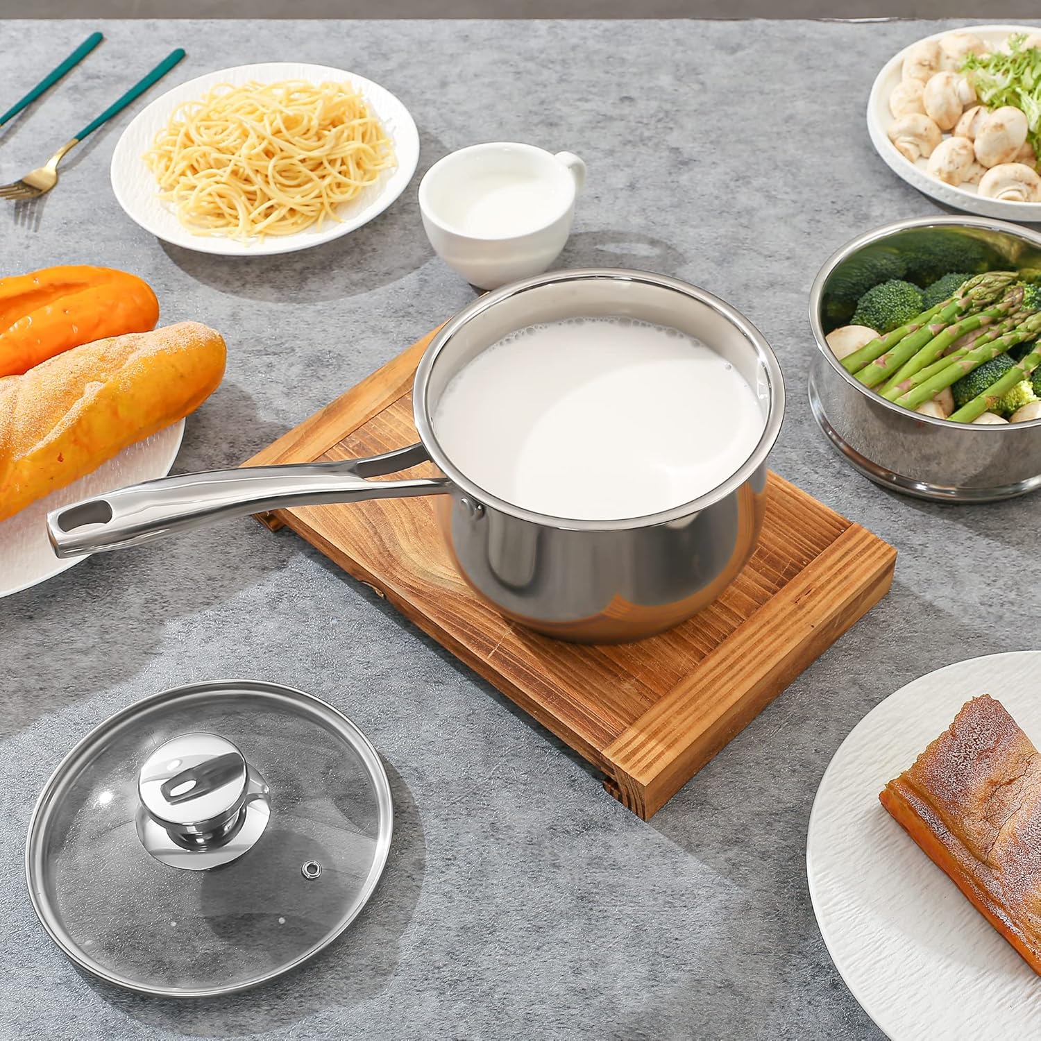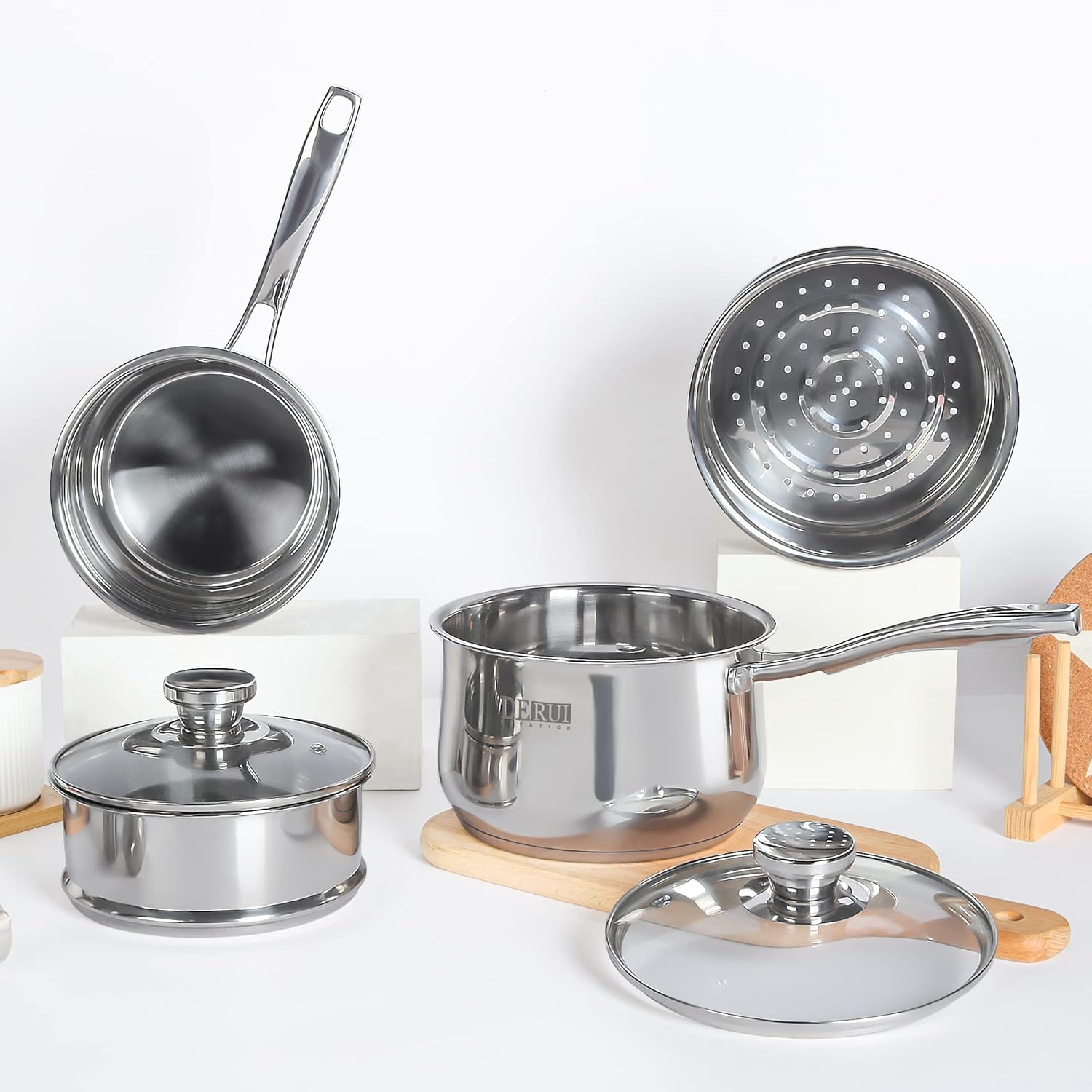 DERUI CREATION Stainless Steel Saucepan 16cm | 1.5 Litre with Steamer