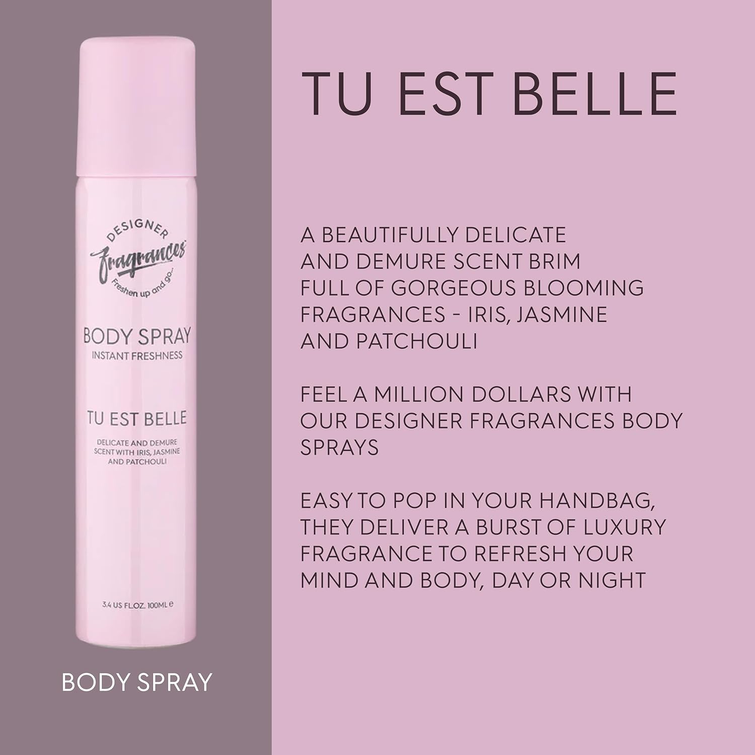 FRESHEN UP AND GO – Feel a million dollars with Designer Fragrances Body Sprays for ladies and women. Because of the 100ml size, these cans are super portable and easy to pop in your handbag or to be kept in your home or office. Each spray delivers a burst of luxury fragrance with a long-lasting smell to refresh your mind and body, day or night. Choose your signature scent or change it up to suit your mood