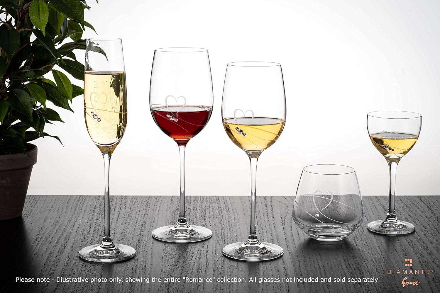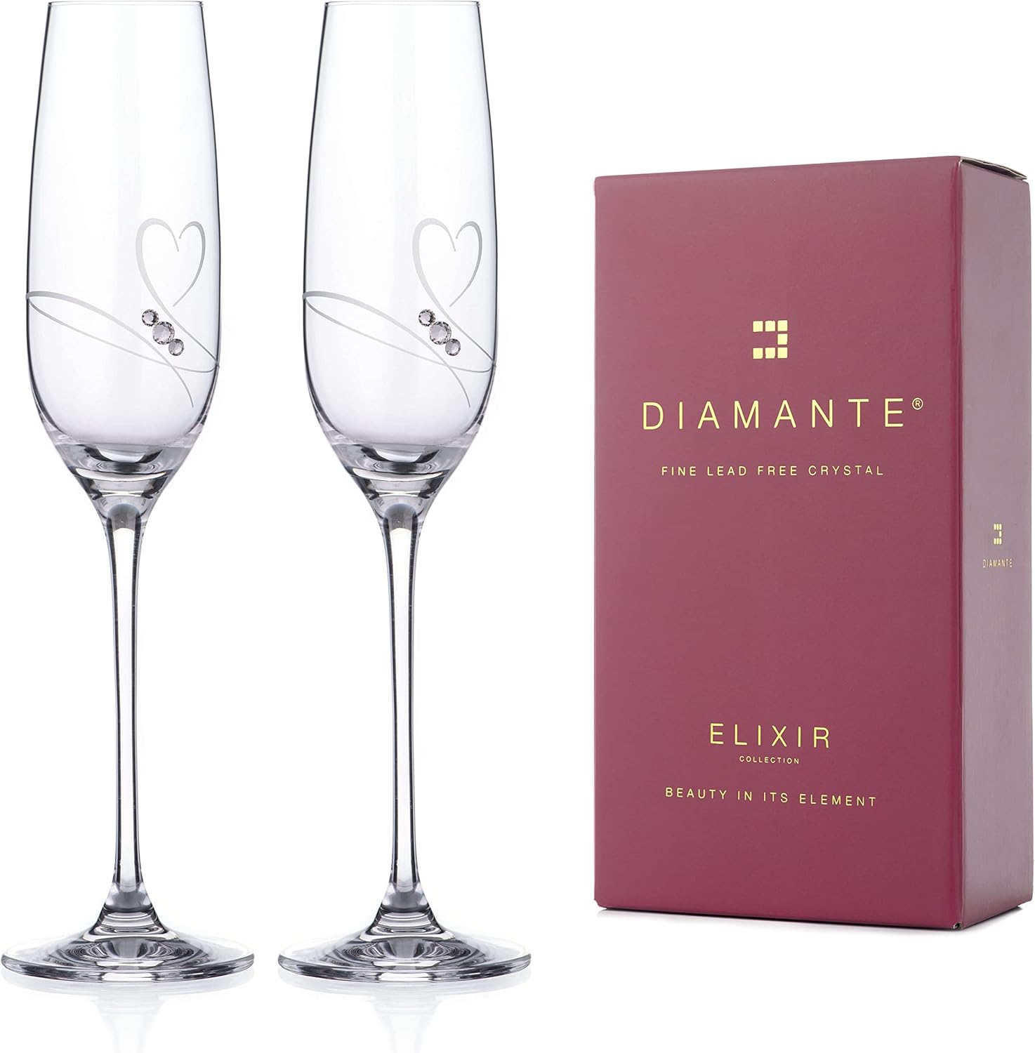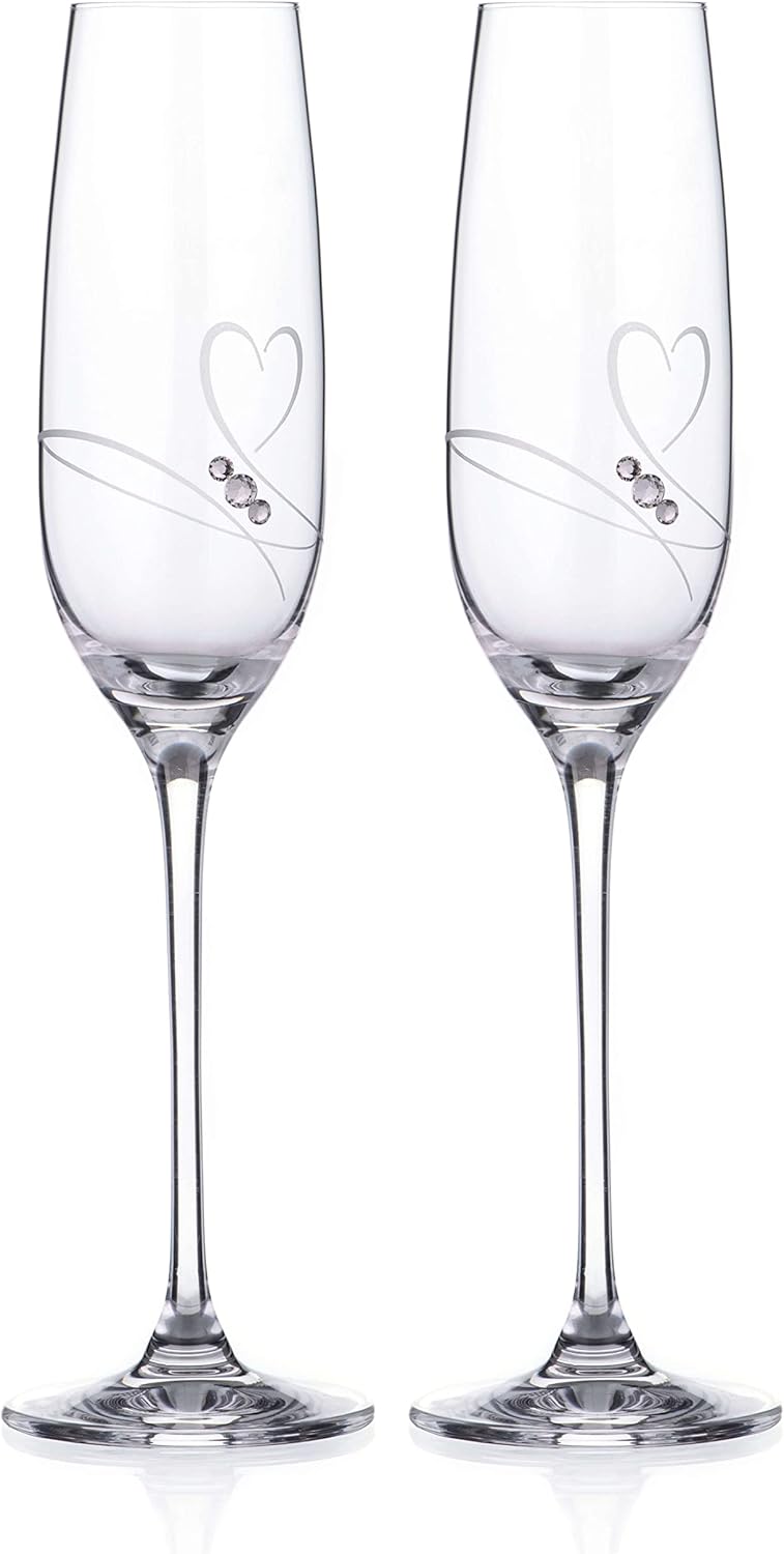 DIAMANTE Swarovski Champagne Flutes Prosecco Glasses Pair with ‘Romance ’ Hand Cut Design Embellished with Swarovski Crystals with Gift Box