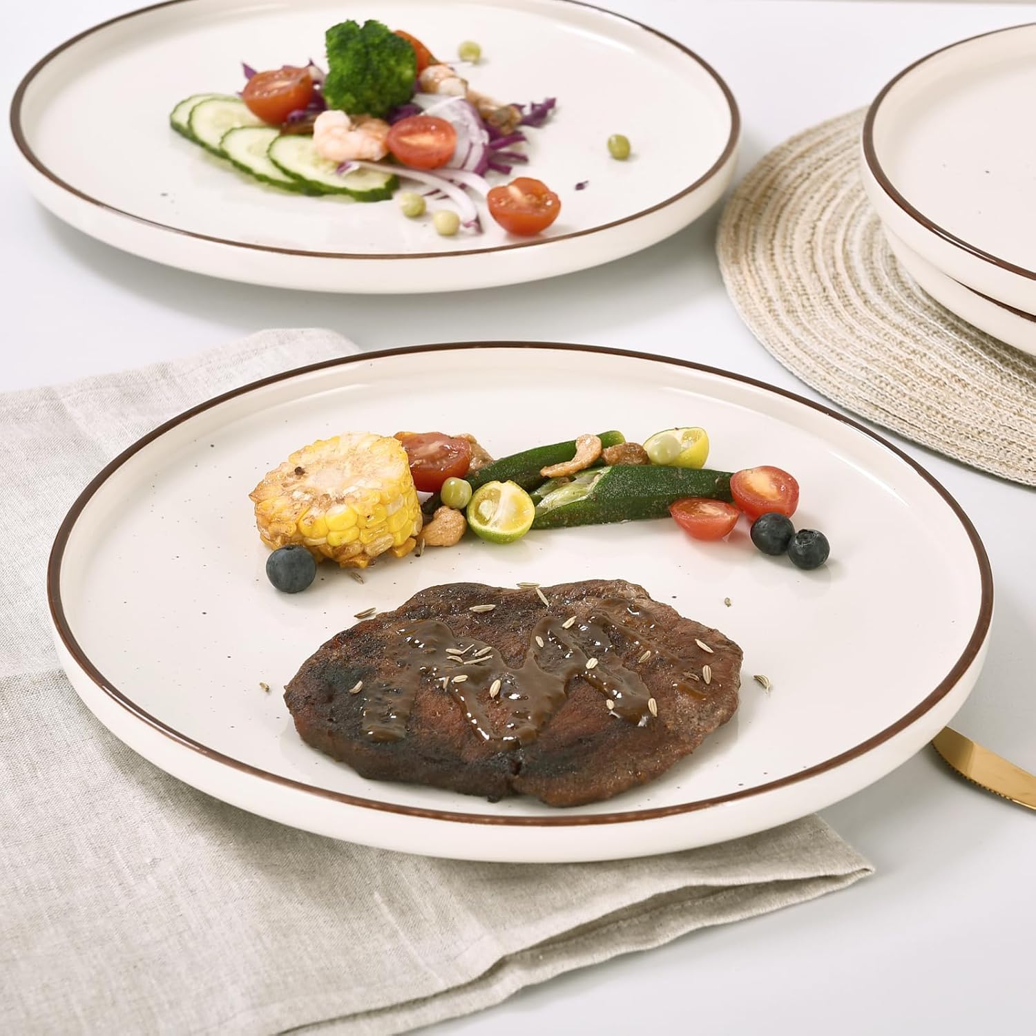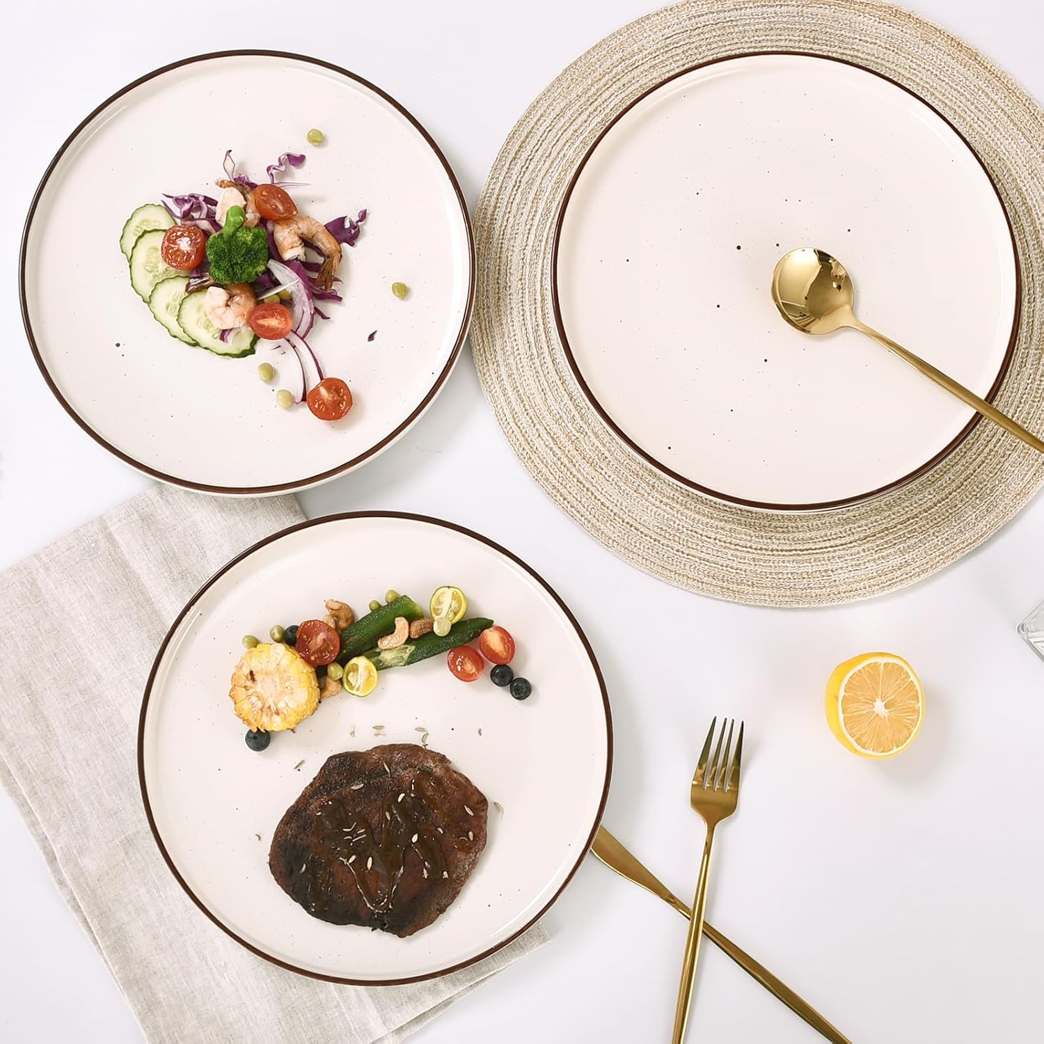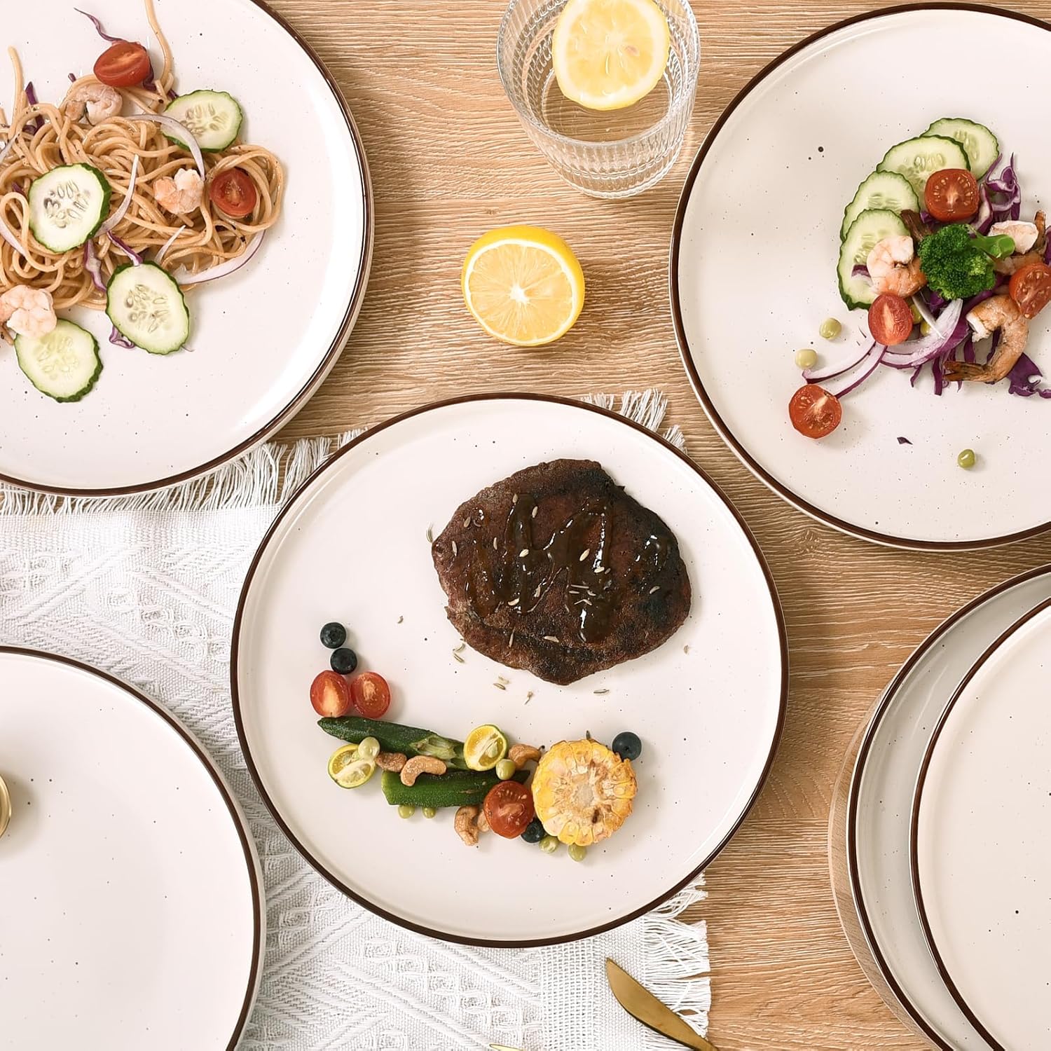 Modern Minimalist Aesthetics – With vanilla white as the base tone, AHX dining plates set conveys a very soft, warm, beautiful feeling that makes people fall in love at first sight. A lovely round with random brown speckles and hand-painted edge, add a touch of elegance to your kitchen.
