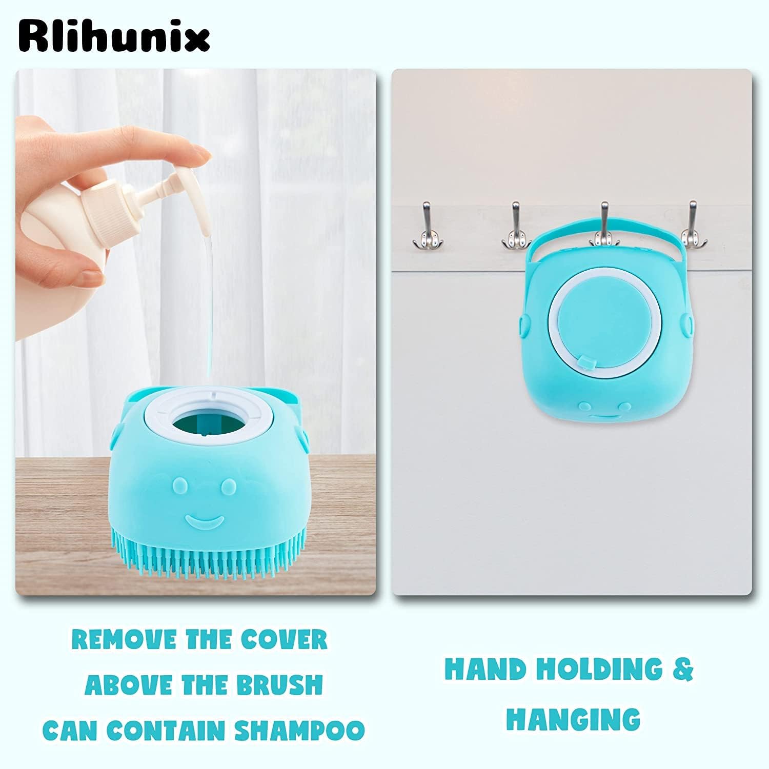 Dog Cat Bath Brush Puppy Pet Massage Bath Brush Silicone Dog Shampoo Brush Pet Grooming Brush Deshedding Tool Dispenser Brushes for Dogs and Cats Long Short Haired Puppy Washing Shower Groomin