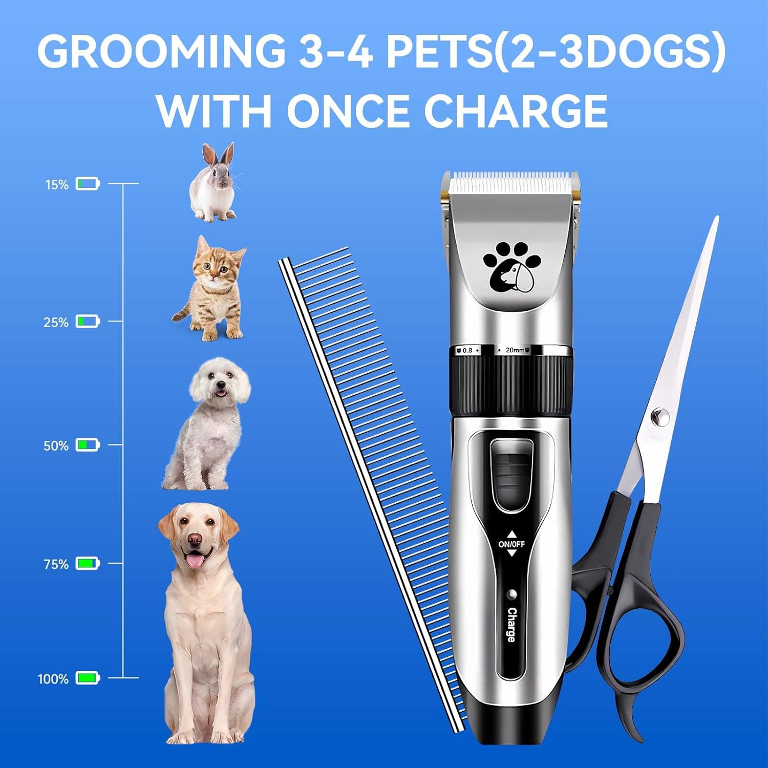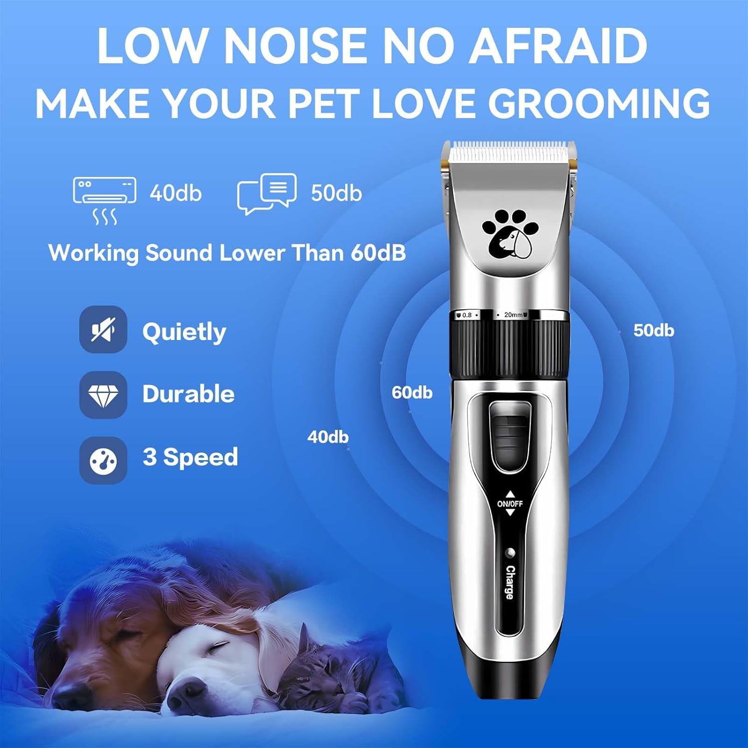 Dog Clippers, Pet Clippers Professional Cordless, Low Noise Pet Trimmers, Rechargeable with 4 Guide Combs Cleaning Brush Nail Kits