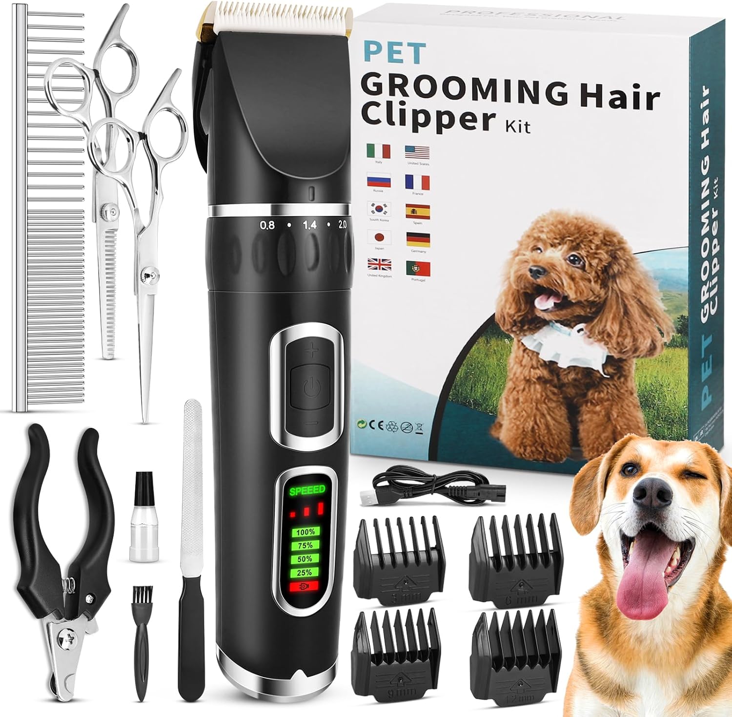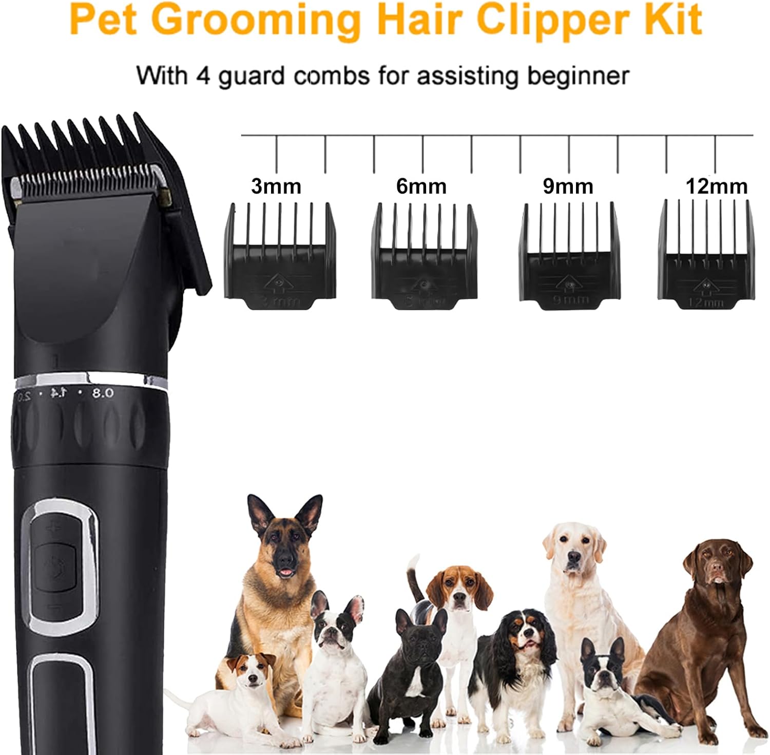 Dog Clippers, Rechargeable Cordless Dog Grooming Kit, 3-Speed Low Noise Pet Grooming Kit for Dog Cat and Other Pets (Black)