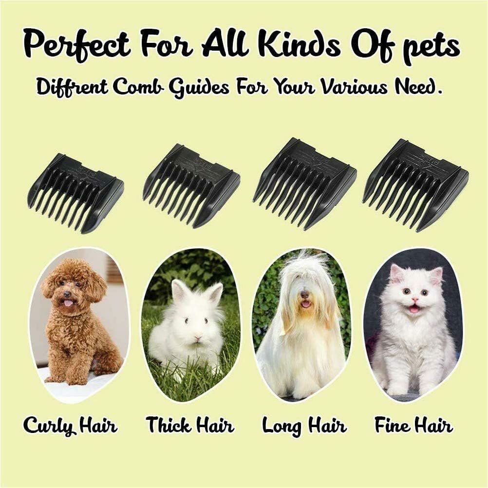 Dog Clippers, Rechargeable Low Noise Cordless Pet Clippers, with 4 Guide Combs and Cleaning Brush Nail Kits