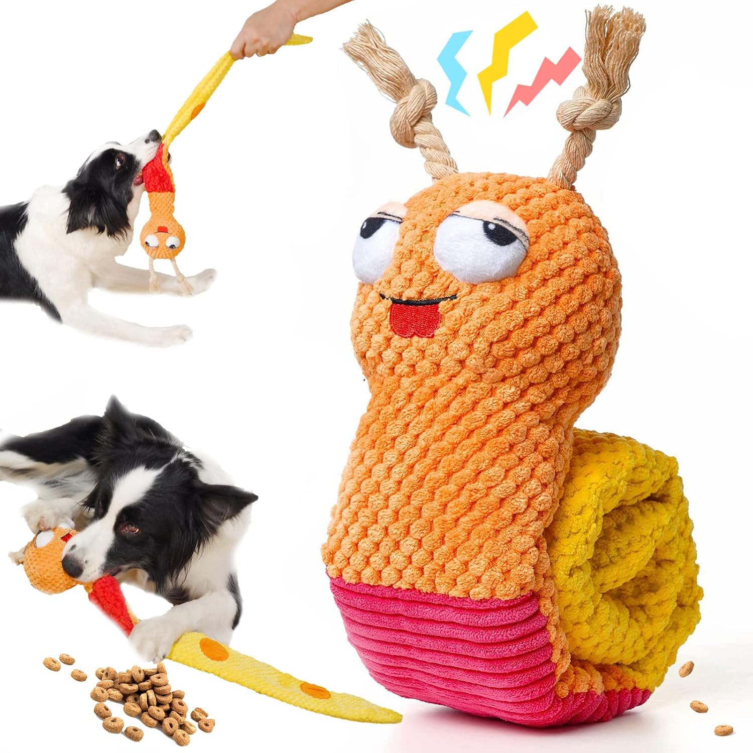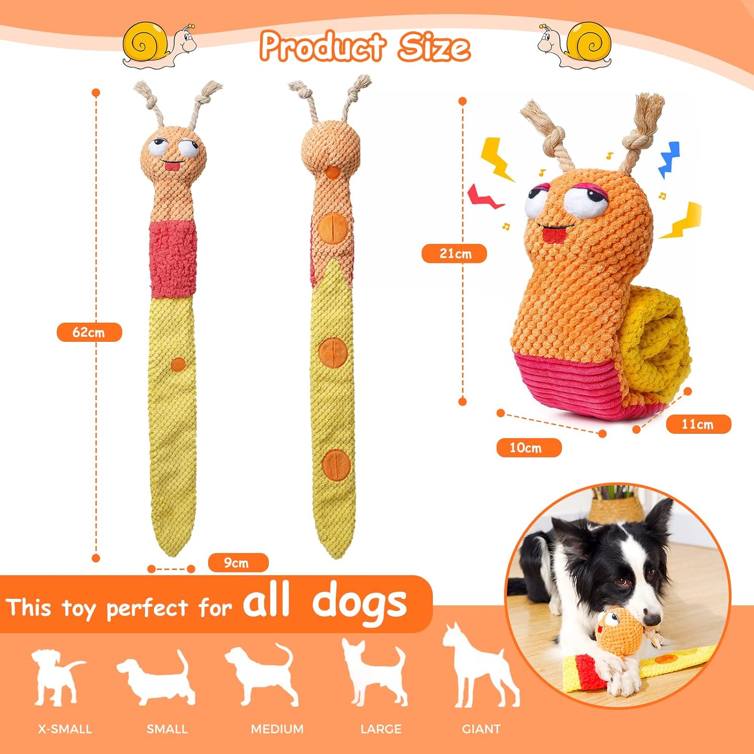 🐕【LONGER TRAINING DOG TOY】Snail toys are rolled out at 62cm long, The long strip shape is perfect for playing tug-of-war games with dogs. Increase interaction with dogs and will make your dog enjoy hours of fun. This size perfect for puppies, small and medium dogs, even large dogs.