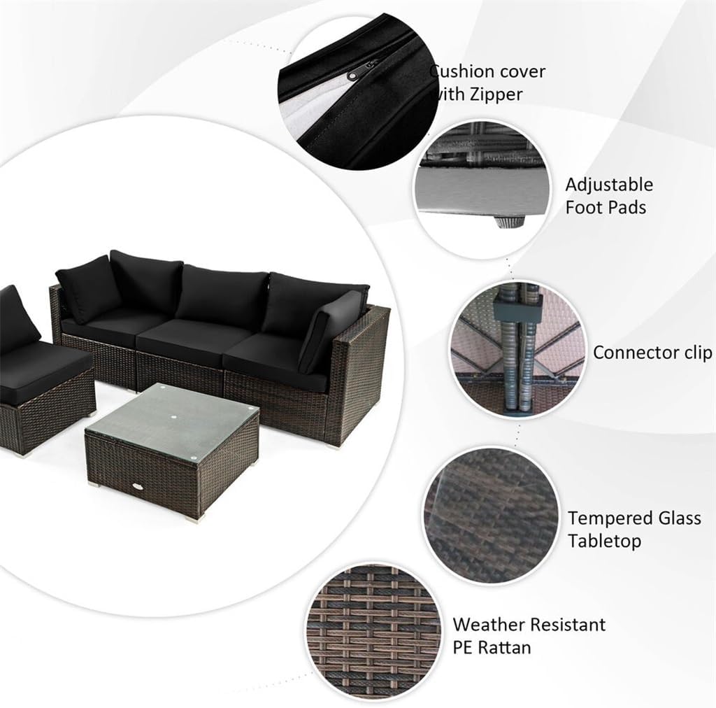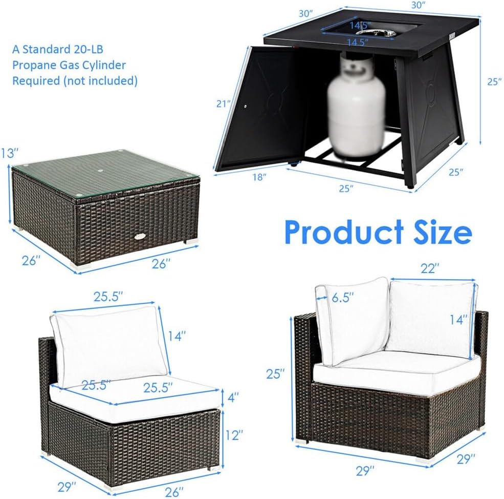 DOLIJA 6PCS Patio Rattan Furniture Set 30″ Fire Pit Table W/Cover Cushioned Black